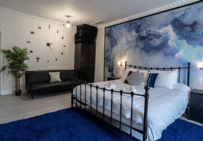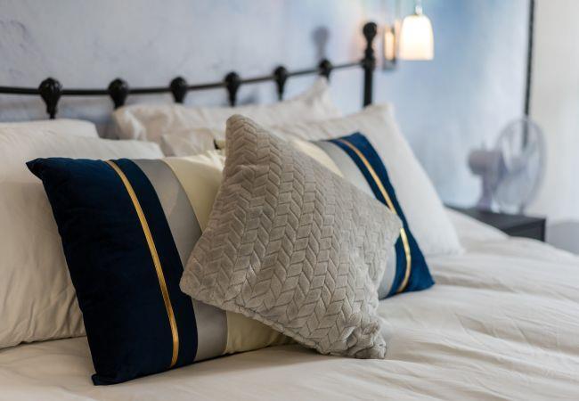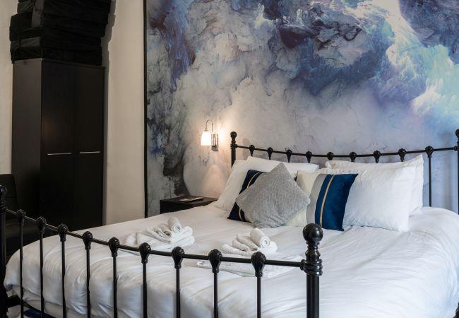 On the ground floor, you'll find a king-size bedroom with a seating area, feature fireplace, and a shower room. Upstairs are two more elegant king-size bedrooms and a family bathroom with a luxurious freestanding bath and double sink.