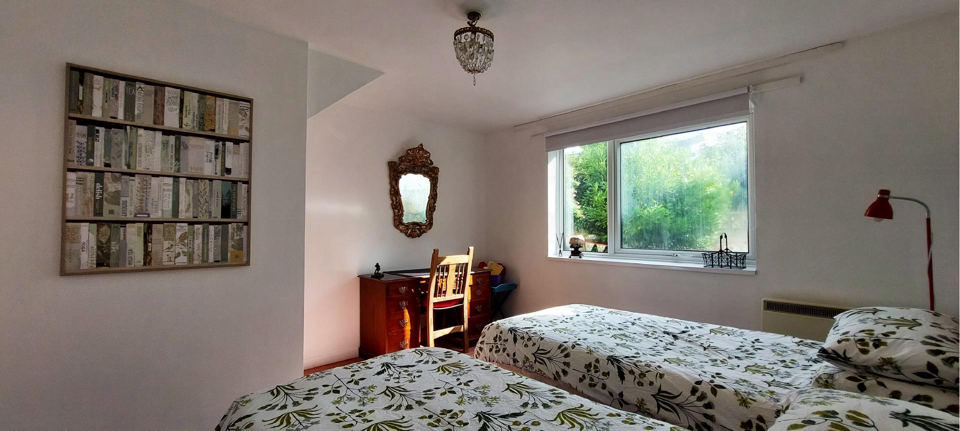 A second bedroom has a queen-size double bed, with the option to add a single bed if required.