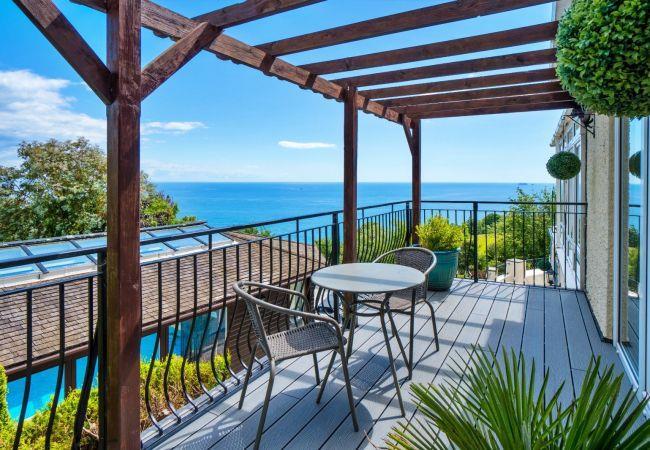 Cliff Lodge is a luxurious coastal retreat set in the heart of the charming village of Maidencombe. The house offers uninterrupted panoramic sea views from glass balconies and sits within two acres of beautifully landscaped gardens with direct access to the South West Coast Path. Perfect for family holidays, group getaways, or special celebrations, the property blends comfort, style, and natural beauty.