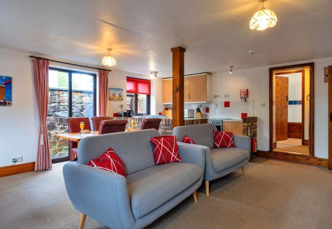 All of the cottages at Stowford Lodge, including Tarquol Cottage, have been lovingly converted from Victorian stone farm buildings that surround a peaceful gravelled courtyard. Each cottage retains a wealth of original features, with exposed beams, high ceilings, and beautiful natural wood finishes.