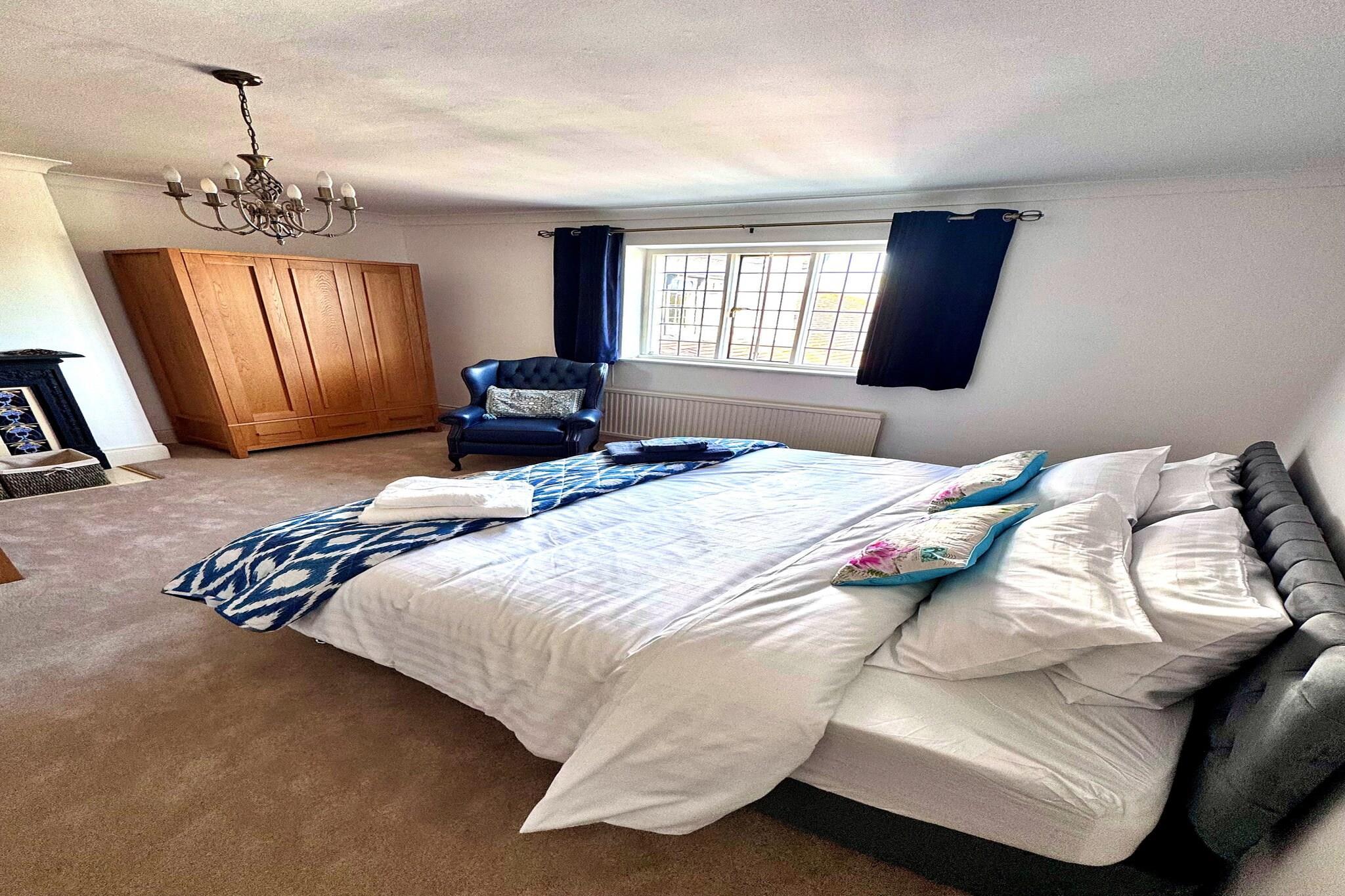 Stueetage: (åbent køkken(elkedel, brødrister, ovn, mikrobølgeovn, opvaskemaskine , køle-fryseskab, , ), stue / spisestue(Fjernsyn, spisebord, pejs, sofahjørne), soveværelse(dobbeltseng), soveværelse(dobbeltseng), Internetadgang) På 1. etage: (soveværelse(enkeltseng, enkeltseng), soveværelse(dobbeltseng), soveværelse(enkeltseng, enkeltseng), soveværelse(enkeltseng, enkeltseng), Soveværelse med badeværelse(king size-seng, badekar), Soveværelse med badeværelse(king size-seng, badekar, bruser), badeværelse(bruser), badeværelse(bruser)) Havemøbler, hottub, vaskemaskine, varme(central), have, grill, parkering, føntørrer