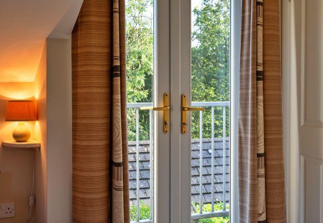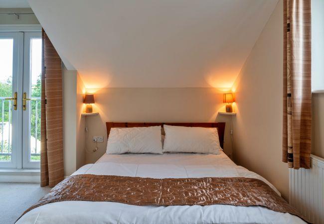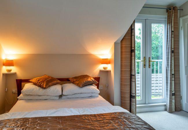 Upstairs, you’ll find two double bedrooms with queen-size beds, each with its own en-suite bathroom featuring a shower over the bath. Start your day with beautiful countryside views from the private balcony, complete with a table and chairs - perfect for enjoying your morning coffee and taking in the peaceful surroundings. Outside, the property offers off-road parking for one car and a small seating area at the front.