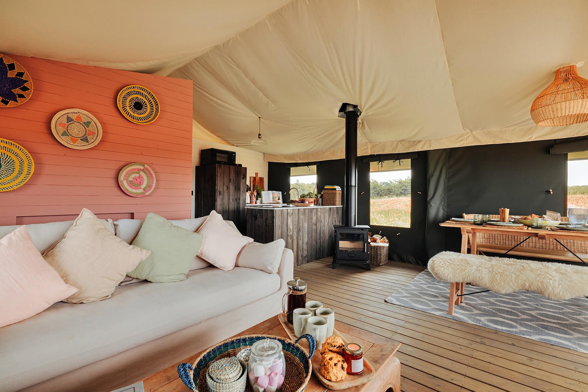 Dette luksuriøse safaritelt-indkvartering, beliggende i Stiffkey-dalen, er ideelt for op til seks gæster og tilbyder en helt unik oplevelse. Den rummelige opholdsstue er designet til komfort med hyggelige sofaer og en brændeovn, perfekt til kølige aftener. Det veludstyrede køkken og spisebord skaber et indbydende rum til at tilberede og dele måltider. Teltet har to kingsize-senge og en dobbeltseng i kabinen, hvilket giver rigelig plads til familier. Det er også kæledyrsvenligt, så du kan tage en velopdragen hund med for at deltage i eventyret. Gæsterne kan også slappe af på teltets terrasse, komplet med en personlig bålplads til aftenafslapning under stjernerne. Beliggende i den naturskønne Stiffkey Valley, er dette safaritelt nedsænket i naturen og tilbyder fredfyldte udsigter over det omkringliggende landskab og utrolige solnedgange. Ejendommen giver en flugt fra hverdagens stress og jag med muligheder for at opleve det lokale dyreliv. Den charmerende by Walsingham ligger i nærheden, hvor gæsterne kan udforske den lokale historie og attraktioner. Det omkringliggende område er perfekt for udendørsentusiaster, med muligheder for vandreture, fuglekikkeri og cykling. For dem, der søger et roligt tilflugtssted eller et udendørs eventyr, er denne beliggenhed ideel. Det udendørs badeværelse byder på en unik oplevelse, der giver gæsterne mulighed for at komme i kontakt med naturen, mens de nyder et afslappende bad. Med alle hjemmets bekvemmeligheder, inklusive inkluderet linned, håndklæder og varme, tilbyder teltet en blanding af luksus og naturlig charme. Parkering udenfor gaden er tilgængelig, og ejendommen er udstyret med alt det nødvendige for et ophold med egen forplejning.