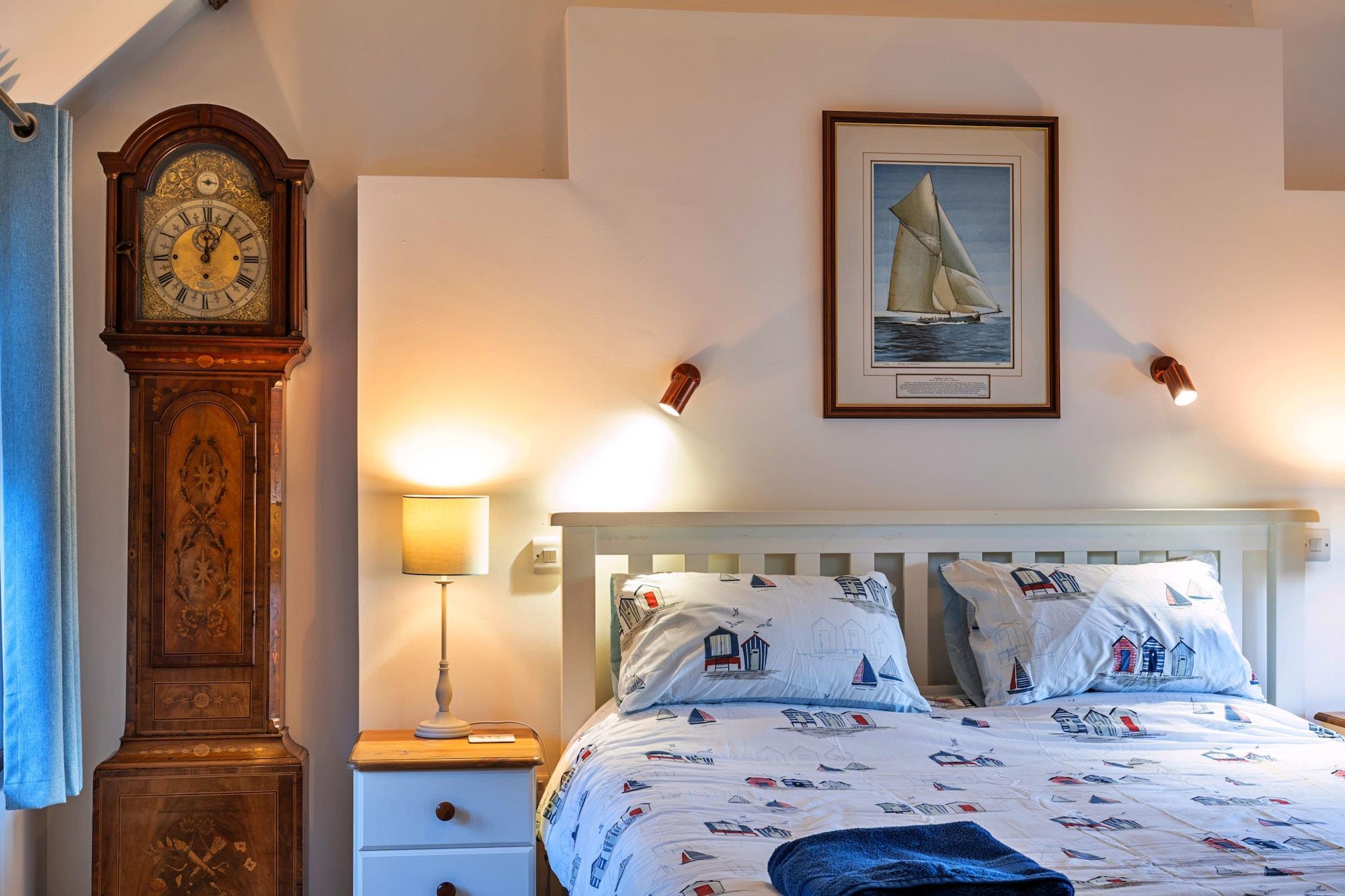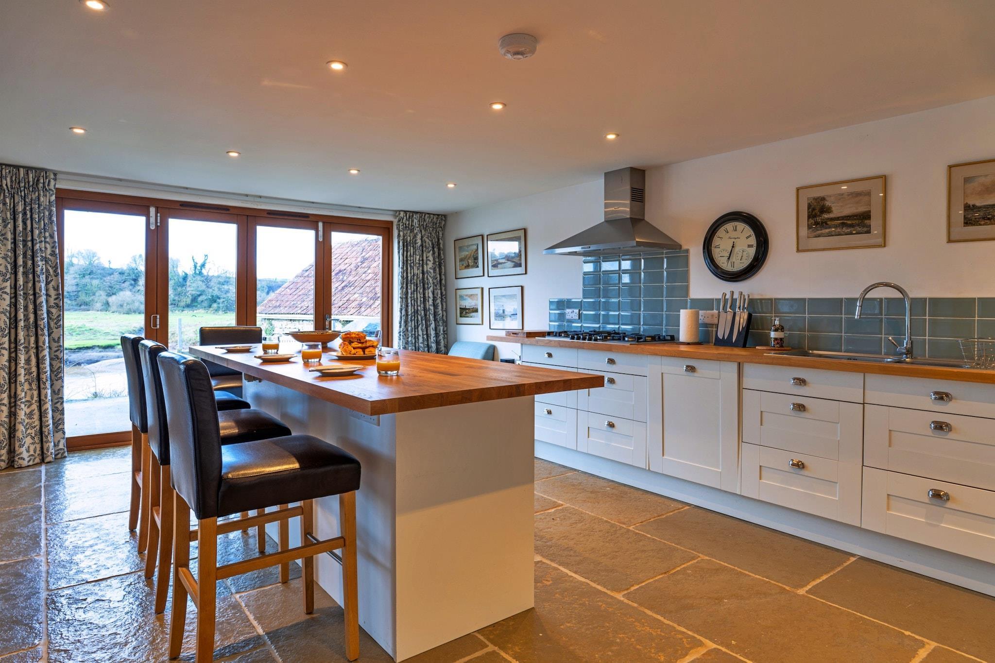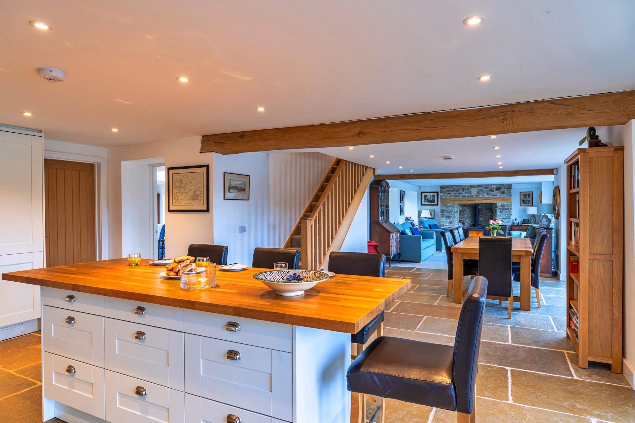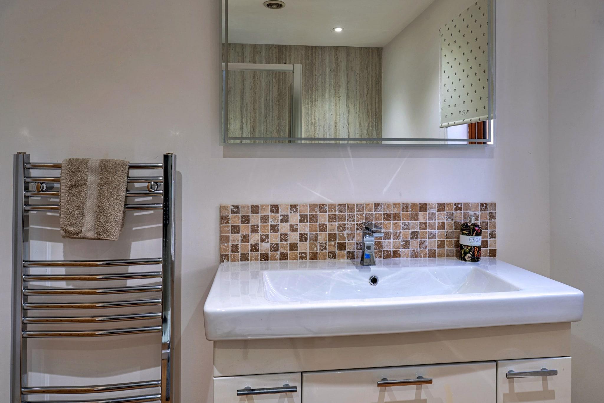 Dette enestående fritliggende hjem ved floden tilbyder et rummeligt og luksuriøst ophold for op til 8 gæster, med tre smukt indrettede soveværelser, hver med en-suite badeværelser. Det store soveværelse har en super kingsize seng, en dobbelt sovesofa og et Freeview-tv med en dvd-afspiller. Det andet soveværelse har en king-size seng og en dobbelt sovesofa, mens det tredje soveværelse har to enkeltsenge. Det åbne køkken og spiseplads med dobbelte døre, der fører til en terrasse, giver et indbydende rum til at tilberede måltider, mens du nyder udsigten over floden. Ejendommen omfatter også et andet spillelokale med et stort Freeview-tv og brætspil til underholdning. Huset er kæledyrsvenligt. Denne ejendom ligger langs de rolige bredder af floden Torridge og tilbyder en fantastisk udsigt over floden og er en perfekt base for at udforske North Devons naturlige skønhed. Med direkte adgang til floden kan gæsterne nyde udendørs aktiviteter, herunder kanosejlads, eller blot slappe af ved floden. Nærliggende attraktioner omfatter de historiske markedsbyer Bideford og Torrington, der byder på lokale butikker og restauranter. Den berømte Exmoor National Park er også i nærheden, og tilbyder fantastiske landskaber for naturelskere. Besøg den charmerende fiskerlandsby Clovelly eller den pulserende badeby Ilfracombe for en dag ude. Feriehuset er fuldt udstyret med moderne bekvemmeligheder for at sikre komfort under hele dit ophold. Det velindrettede køkken indeholder alle de nødvendige apparater til selvforplejning, mens opholdsområderne er perfekte til afslapning. Ejendommens indbydende brændeovn byder på varme i de koldere måneder, og den udendørs terrasse giver perfekte rammer for at nyde udsigten over floden