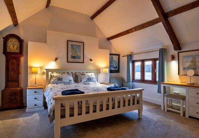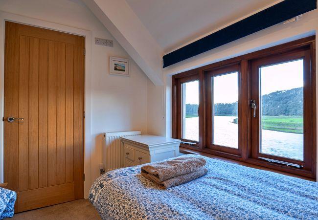 The contemporary open-plan kitchen and dining area provide a delightful space to prepare and enjoy your favourite meals, with bi-fold doors leading out to the terrace. Almost every room of the property offers uninterrupted views of the river, making it an ideal spot for wildlife watching.