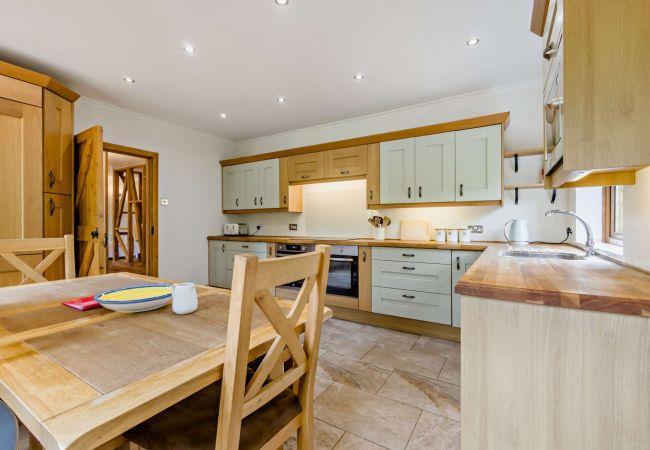 Head inside to discover a warm and welcoming home filled with character, from exposed wooden beams to elegant archways and light-filled rooms. The spacious sitting room invites you to unwind, with dual-aspect views and French doors leading to the garden. A games room provides entertainment for all ages, while the charming dining room with a feature fireplace is the perfect place to gather for home-cooked meals. The well-equipped kitchen offers everything you need to prepare feasts, complete with modern appliances and stylish wooden countertops.