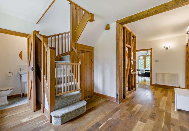 The large private garden wraps around the home, offering plenty of space for outdoor fun and relaxation. Enjoy al fresco dining on the sun terrace, let the kids explore the vast lawn, or simply soak in the peaceful countryside surroundings. A gravel driveway provides ample parking, making it easy for multiple cars to arrive and settle in comfortably.