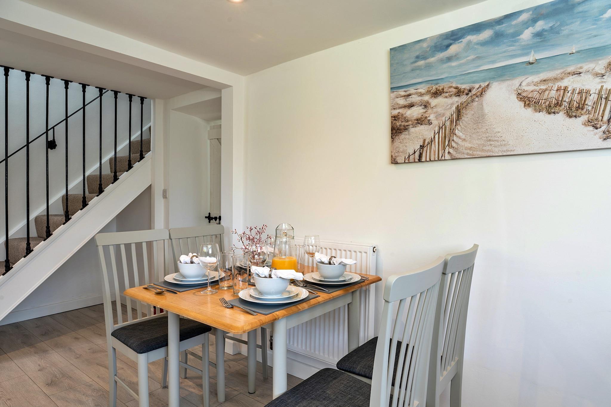 Beliggende i Cornwalls naturskønne landskab tilbyder dette dejlige sommerhus et hyggeligt tilflugtssted for op til fire gæster. Indenfor finder du en varm og indbydende stue med komfortable siddepladser, et tv, Wi-Fi og store vinduer, der oversvømmer rummet med naturligt lys og fremviser en betagende panoramaudsigt fra St. Ives til St. Agnes. Det veludstyrede køkken har alle moderne bekvemmeligheder, hvilket gør det nemt at tilberede lækre måltider, som kan nydes ved spisebordet i afslappede omgivelser. Sommerhuset er gennemtænkt designet til at blande rustik charme med moderne bekvemmeligheder, hvilket giver et perfekt hjem væk fra hjemmet. Ejendommen kan prale af to smukt indrettede soveværelser - det ene med en komfortabel king-size seng og det andet med to enkeltsenge - hver skaber et afslappende tilflugtssted efter en dag med udforskning af Cornwalls rige attraktioner. Det moderne familiebadeværelse inkluderer badekar, separat bruser, toilet og håndvask, hvilket sikrer bekvemmelighed og komfort. Træd udenfor i den private have, hvor du kan nyde morgenkaffen på græsplænen eller spise al fresco under stjernerne. For yngre gæster er der et gyngestativ og rigelig udendørs plads til at lege og slappe af midt i frodige grønne områder. Ideelt beliggende i Wheal Buller tilbyder denne hytte nem adgang til Cornwalls ikoniske seværdigheder, herunder St. Michael's Mount og Tintagel Castle. Udforsk den forrevne kystlinje, slap af på sandstrande, eller tag naturskønne gåture gennem landskabet. Dette charmerende hjem er perfekt til par og familier, der søger et roligt tilflugtssted omgivet af naturlig skønhed og historie. For mere information og reservationer, kontakt venligst Finest Retreats og nyd et mindeværdigt ophold i disse fantastiske corniske omgivelser.