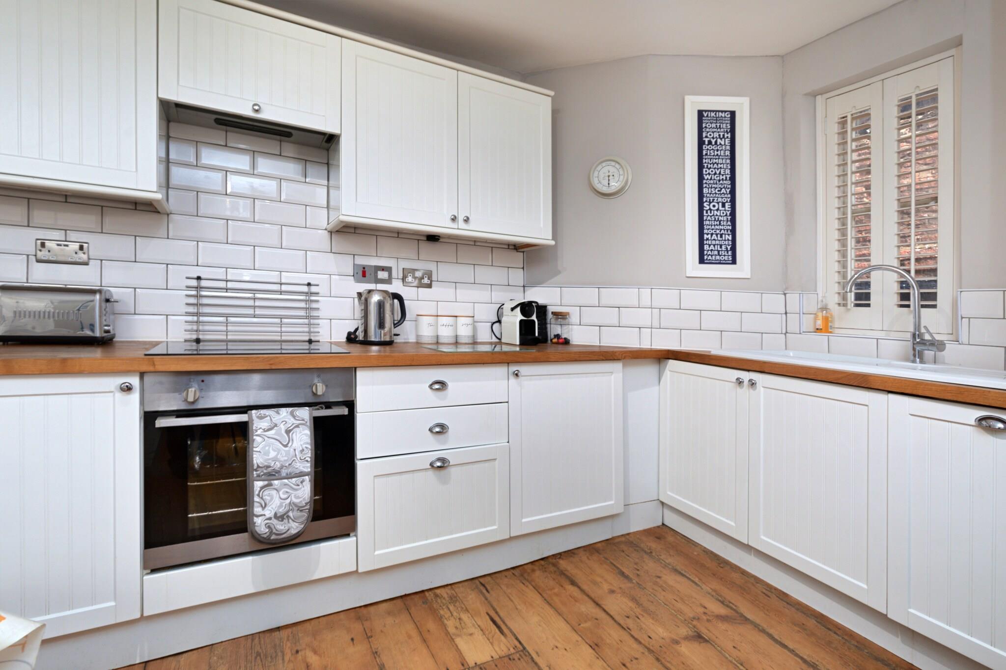 Denne charmerende to-værelses maisonette tilbyder et hyggeligt og karakterfuldt tilflugtssted for familier eller små grupper, der søger en ferie ved havet i Whitby. Det kan sove op til fire gæster og har et stort king-size soveværelse og et dobbeltværelse, der kan omdannes til en konge efter anmodning. Den rummelige opholdsstue er ideel til afslapning, med et fuldt udstyret køkken med moderne bekvemmeligheder såsom komfur, ovn, mikroovn, elkedel, køleskab, opvaskemaskine og kaffemaskine. Lejligheden har også et moderne badeværelse med badekar og bruser over hovedet samt en håndklædetørrer. Kæledyrsvenlig lejligheden byder velkommen til op til to velopdragne kæledyr, hvilket gør den perfekt til dem, der rejser med lodne ledsagere. Denne lejlighed ligger i hjertet af Whitby og tilbyder nem adgang til en række lokale attraktioner. Inden for gåafstand kan gæsterne udforske det ikoniske Whitby Abbey, 199 Steps, RNLI-museet og de charmerende strande i Sandsend og Whitby Beach. For historieentusiaster er Captain Cook's Memorial Museum også i nærheden. Selve byen kan prale af et væld af spisesteder, caféer og pubber, hvilket sikrer, at gæsterne har masser af spisemuligheder lige ved hånden. Den centrale beliggenhed giver også nem adgang til naturskønne vandreture langs kysten og mulighed for at nyde den fantastiske udsigt over Yorkshires kystlinje. Lejlighedens køkken er fuldt udstyret, hvilket gør det til et ideelt valg for gæster med egen forplejning. Med et behageligt opholdsrum giver det en hjem-væk-fra-hjemmet-oplevelse, perfekt til at slappe af efter en dag med udforskning. Gæsterne vil også finde Wi-Fi, TV og varme inkluderet, hvilket sikrer komfort under hele opholdet.