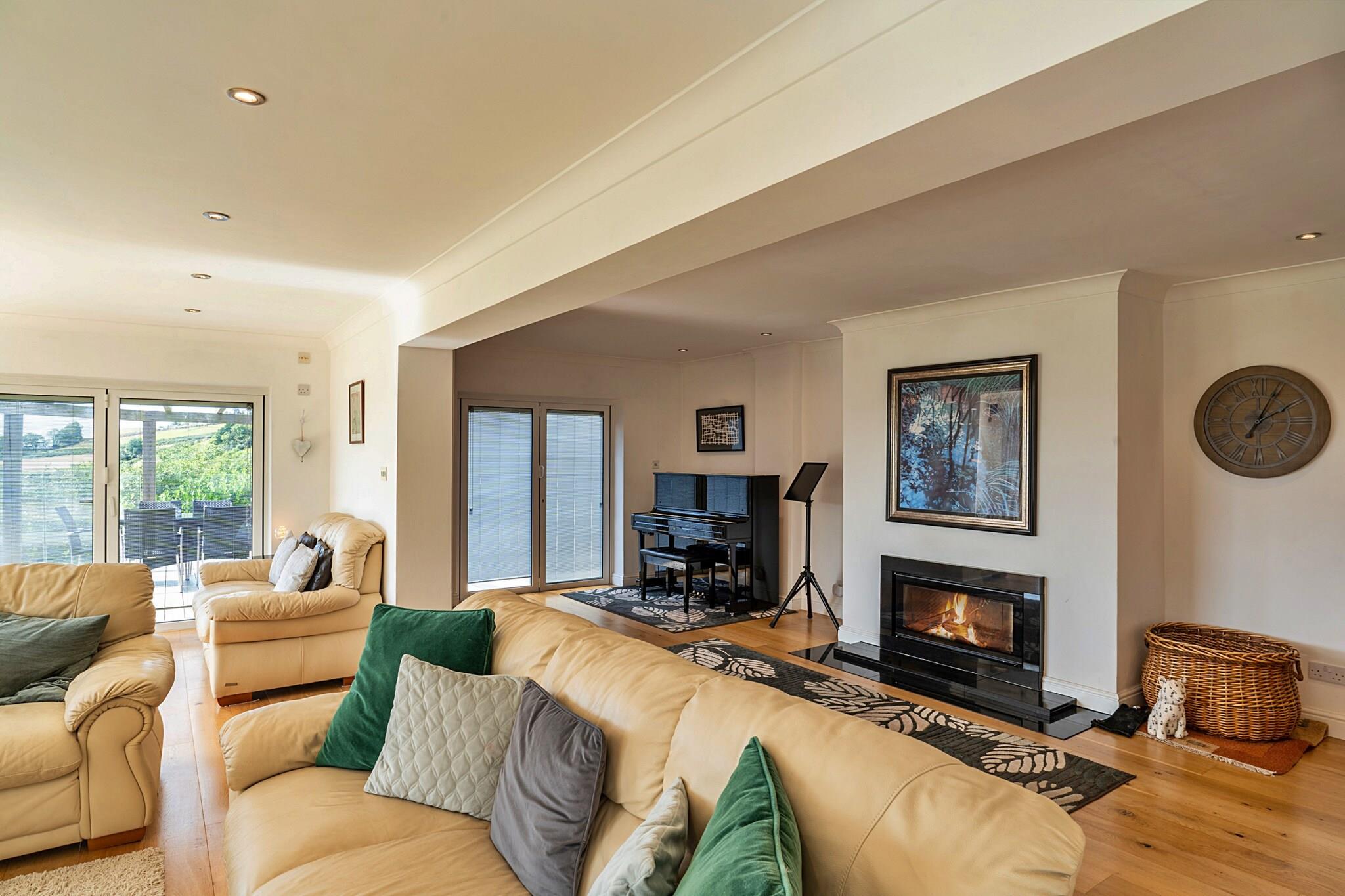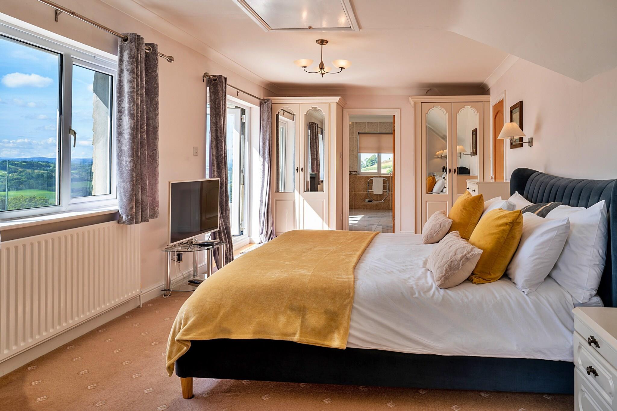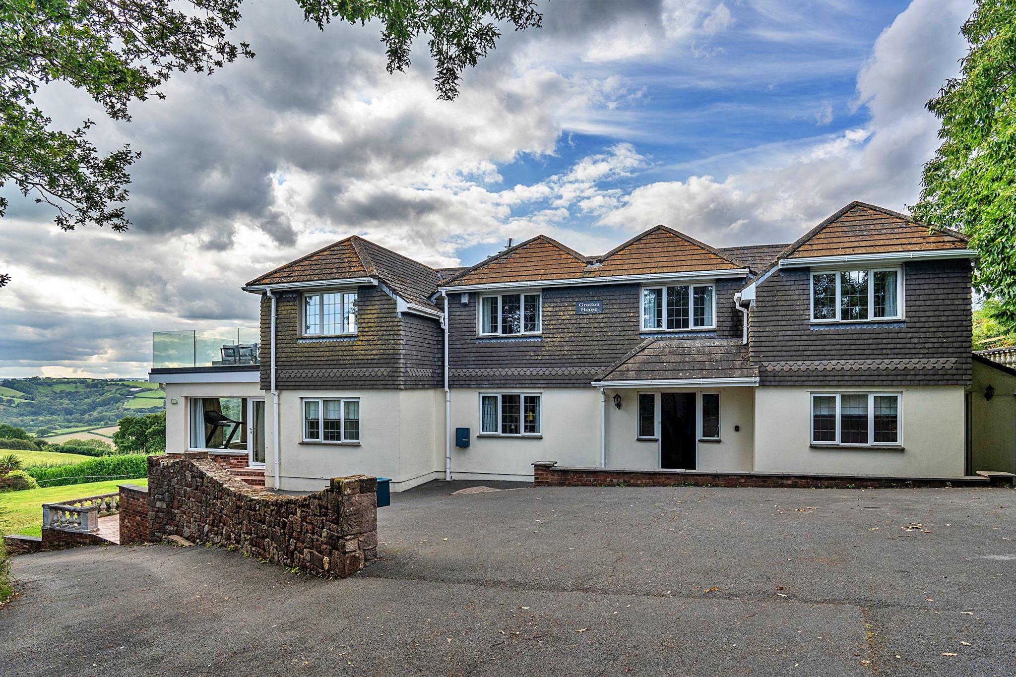 Velkommen til dit ideelle tilflugtssted - et rummeligt sommerhus beliggende i rolige landlige omgivelser, perfekt til store familiesammenkomster eller vennesammenkomster. Med en betagende udsigt over det omkringliggende landskab tilbyder dette tilbagetog en indbydende atmosfære, hvor mindeværdige øjeblikke skabes. Uanset om du fejrer en særlig lejlighed eller blot leder efter en pause fra hverdagens stress og jag, rummer dette hjem grupper med elegance og komfort, alt imens det er kæledyrsvenligt for dine firbenede ledsagere. Hytten er fordelt på to niveauer og har generøse fællesrum og gennemtænkt designede værelser. Stueetagen kan prale af en hyggelig stue med en brændeovn, store dobbelte døre, der åbner til en fantastisk overdækket terrasse, og en spisestue perfekt til fælles måltider. Det velindrettede køkken, udstyret med moderne bekvemmeligheder, imødekommer nemt din gruppes kulinariske behov. For dem, der kan lide lidt sjov, tilbyder fitnesscentret og spillelokalet både træningsudstyr og et udvalg af brætspil, hvilket sikrer, at alle forbliver underholdt, uanset vejret. Efter en dag med udforskning, kan du slappe af i et af de komfortabelt møblerede soveværelser med en række forskellige sengestørrelser og en-suite faciliteter til rådighed, så de passer til din gruppes behov. Begiv dig udenfor for at fordybe dig i hyttens ekspansive have på 1 hektar, som inviterer til udendørs udforskning og afslapning. Det lukkede græsplæneområde er perfekt for kæledyr at strejfe frit omkring, mens du nyder en eftermiddagsgrill på terrassen. Balkoner fra værelserne på øverste etage giver panoramaudsigt, mens du nipper til din morgenkaffe. På trods af dens fredfyldte landlige beliggenhed ligger den charmerende landsby Whitestone kun 800 meter væk, og den livlige by Exeter er kun 6 km væk, hvilket giver mulighed for det bedste fra begge verdener. Med rigelig parkering til op til 10 biler og et ladepunkt for elbiler på stedet, giver dette sommerhus virkelig et enestående tilflugtssted for store grupper, der ønsker at genoprette forbindelsen i smukke omgivelser. For mere information og reservationer, kontakt venligst Finest Retreats.