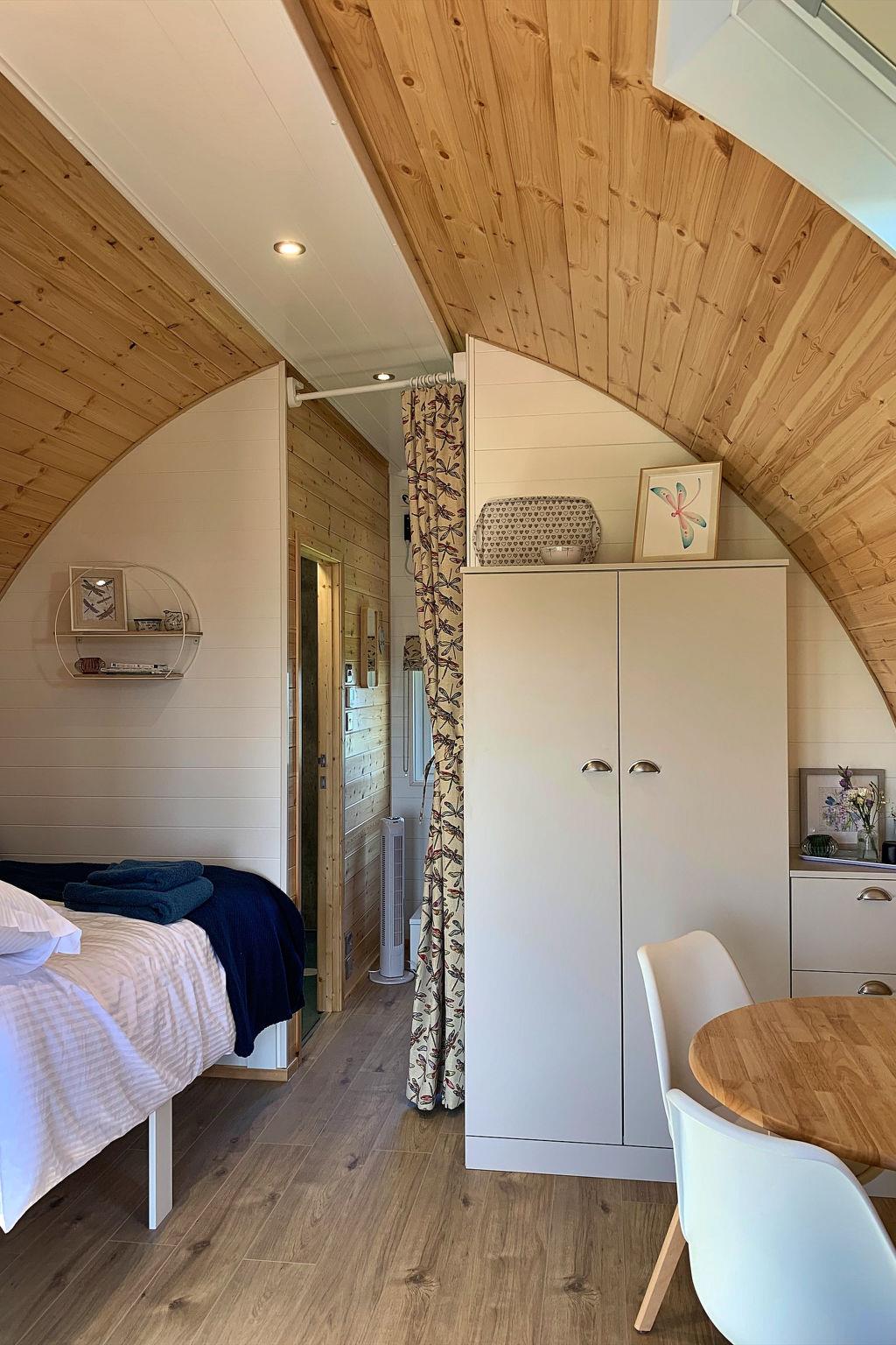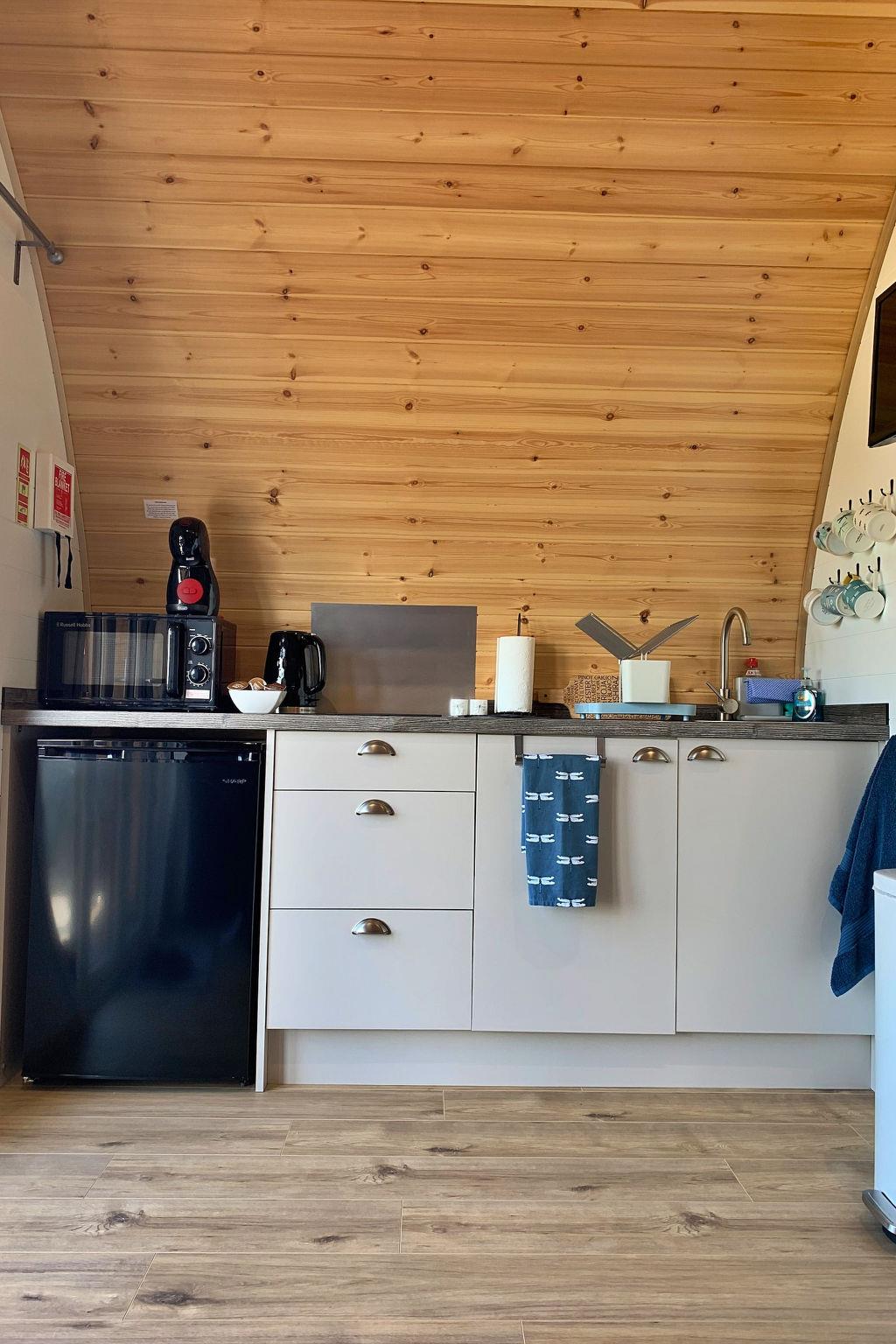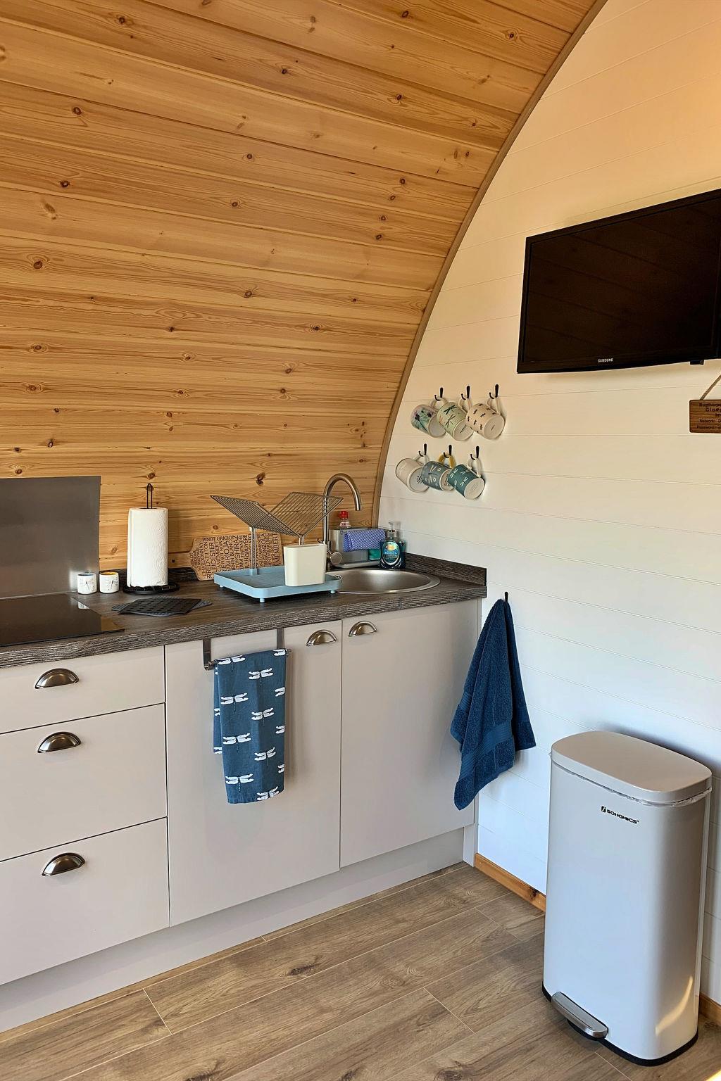 "Deep Dale", 2-room chalet 28 m2, on the ground floor. Object suitable for 4 adults + 1 child. Living room. 1 room with 1 bed and 2 double beds. Kitchen (toaster, kettle, microwave, electric coffee machine). Shower/WC. Terrace. Barbecue. View of the garden. Facilities: hair dryer. Internet (WiFi, free). Parking (1 car). Please note: non-smokers only. Smoke alarm.