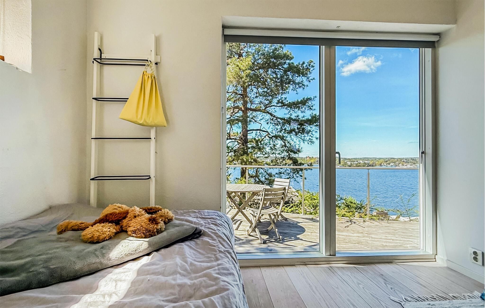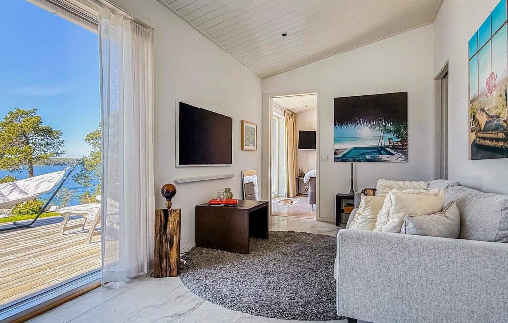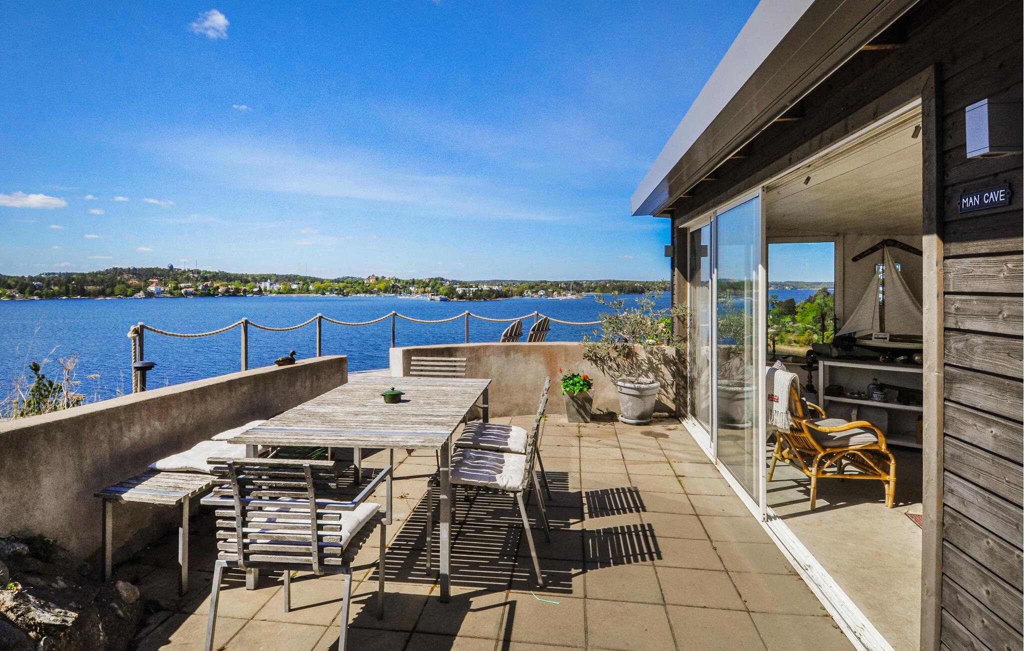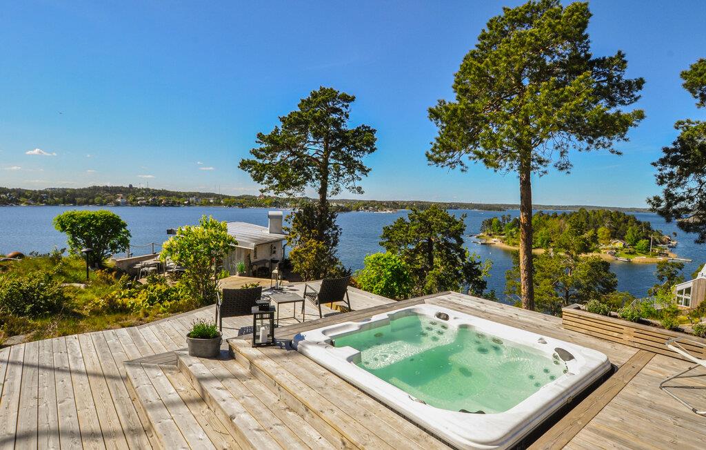 Nyd luksuriøse ferier med panoramaudsigt og direkte adgang til skærgården. Tilbring en eksklusiv ferie på øen Algö i dette rummeligt designede feriehus med enestående udsigt over vandet. Kombinationen af moderne arkitektur, naturlige omgivelser og gennemtænkt komfort i hovedhuset skaber de ideelle betingelser for uforglemmelige dage ved havet. Bliv budt velkommen af lyse værelser, store glasfacader og en åben planløsning. Slap af på komfortable designermøbler med udsigt over bugten, eller nyd hyggelige timer i det elegante køkken med køkkenbord og spisebord. Læn jer tilbage til sofaen med en bog, eller nyd filmaftener sammen i den smagfuldt møblerede stue. Alle værelser tilbyder adgang til naturen, hvilket skaber et problemfrit samspil mellem inde og ude. Udnyt det brede udvalg af terrasser til morgenmad i morgensolen, solbadning i en liggestol eller en dukkert i spabadet med vidunderlig udsigt over skærgården. Vælg mellem rolige retræter og åbne områder til sociale sammenkomster. Besøg Saltsjöbaden, kun få kilometer væk, med dens restauranter, svømmemuligheder og nærhed til en golfbane. Tag ture til Stockholms centrum, som er let tilgængeligt, eller udforsk skærgården med båd.