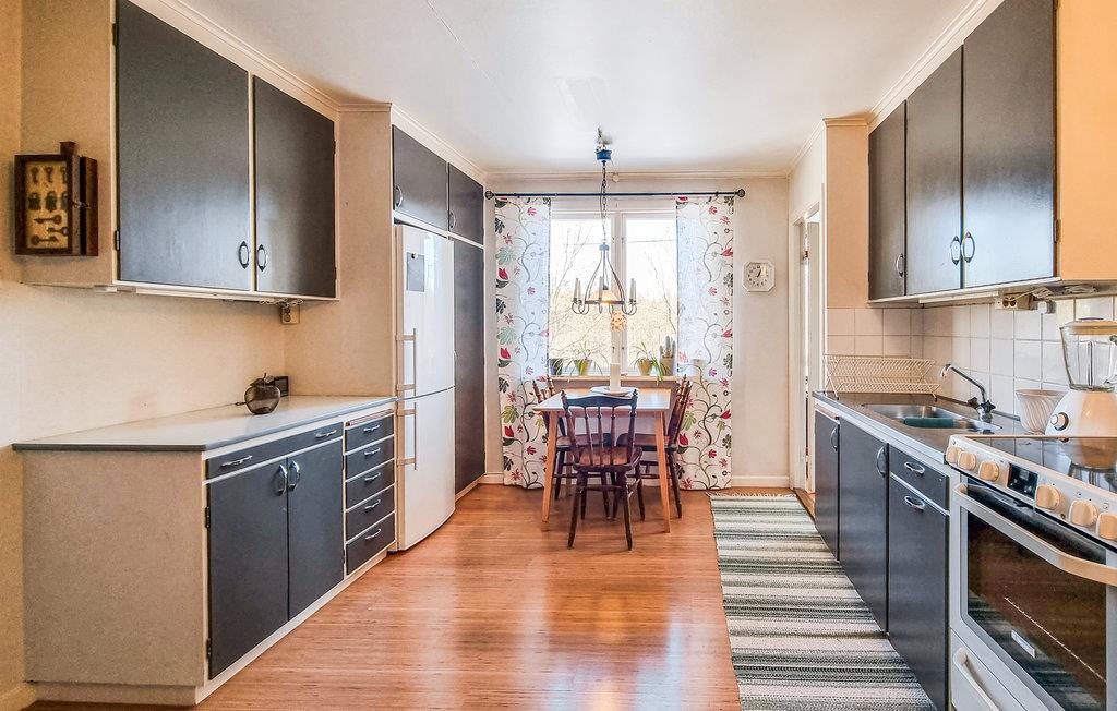 Dette skønne hus har plankegulve beklædt med farverige tæpper og tapet, der skaber en legende og hyggelig atmosfære. Denne bolig har masser af plads til, I kan brede jer og føle jer hjemme. Huset er børnevenligt og har bibeholdt periodens charme og stil, inklusive brændeovnen, som også sørger for en hyggelig varme. Der er også både et læsehjørne og en rummelig legehave ud til en skov, så her er meget stille.