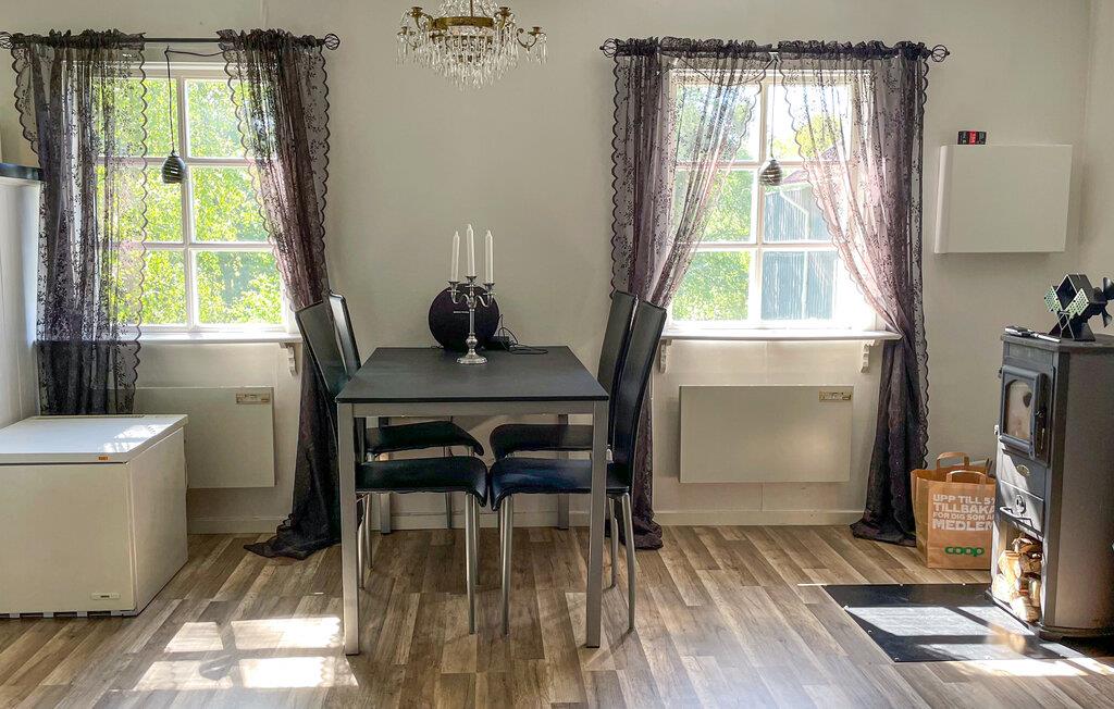 Slap af under en idyllisk ferie i dette charmerende feriehus og udforsk aktivt den attraktive region. Dette hyggelige lille hus inviterer jer til at tilbringe afslappende dage sammen med familien midt i den idylliske natur. Fremkald jeres yndlingsmåltider her, tænd den norske pejs på køligere dage, og krøl jer sammen i den hyggelige stue med en god bog eller et brætspil efter en lang dag udendørs. På den fælles grund kan jeres børn legesygt udforske naturen, mens I tænder grillen og tilbereder stemningsfulde måltider udendørs. Pak en picnickurv og cykl eller gå til søen Tolken, hvor I kan svømme eller fiske. Udforsk det nærliggende Borås med dens zoologiske have og charmerende bymidte fyldt med hyggelige caféer og butikker, og oplev Göteborg, Ulricehamn og Ullared.