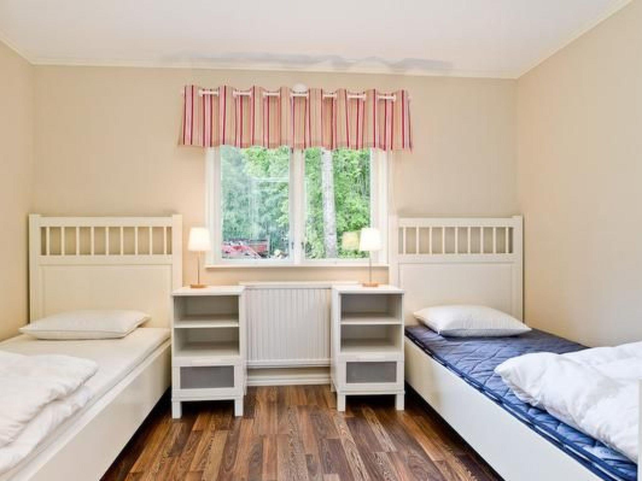 The house was built in the 50s and renovated in spring 2011 and furnished with new furniture. The house is 80 sqm and is suitable for 6 persons. It has three bedrooms, a spacious living room, kitchen with dining area and fully tiled shower room with toilet, sink and washing machine. The rooms are divided into one with a double bed, one with two single beds and one with bunk beds. The living room is bright and airy with views of the lake and equipped with a large sofa and 42 inch TV. The kitchen is equipped with stove, ceiling fan, fridge / freezer, microwave and coffee maker. Large sunny terrace overlooking the lake, garden furniture with seating for 6 people and umbrellas. Access to the rowboat and swimming ability. Fishing in the lake is possible. There is parking at the house.