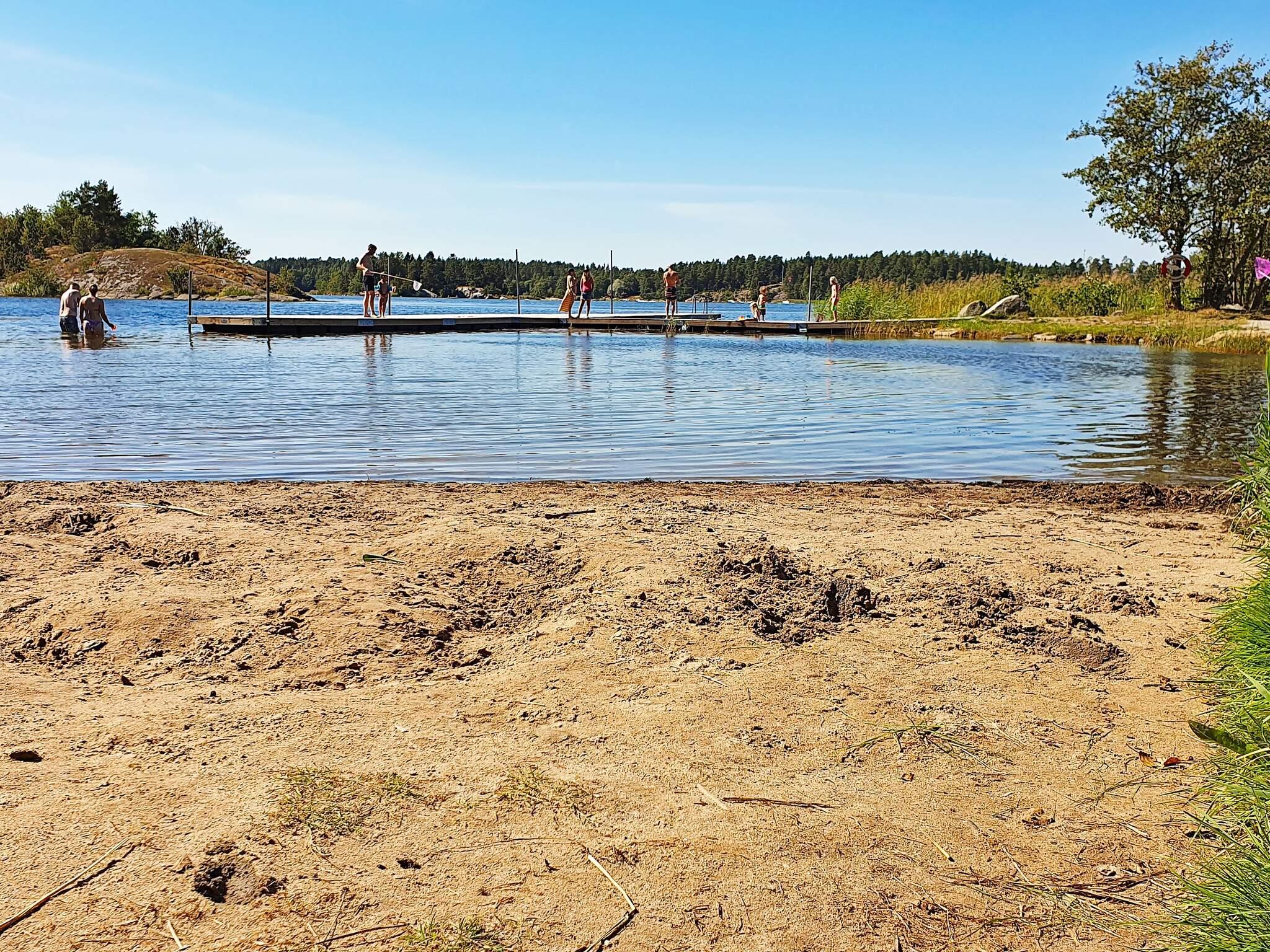 Köket har öppen planlösning mot vardagsrummet och dörrar ut mot den stora altanen med utemöbler och grill, för trevliga utekvällar. Badrummet är helkaklat med dusch, WC och tvättmaskin. Tomten är trevlig och plan för spel och lek. Bara 700 meter från huset finns Åkeröbadet, en långgrund sandstrand med brygga, plan gräsmatta och bänkar.