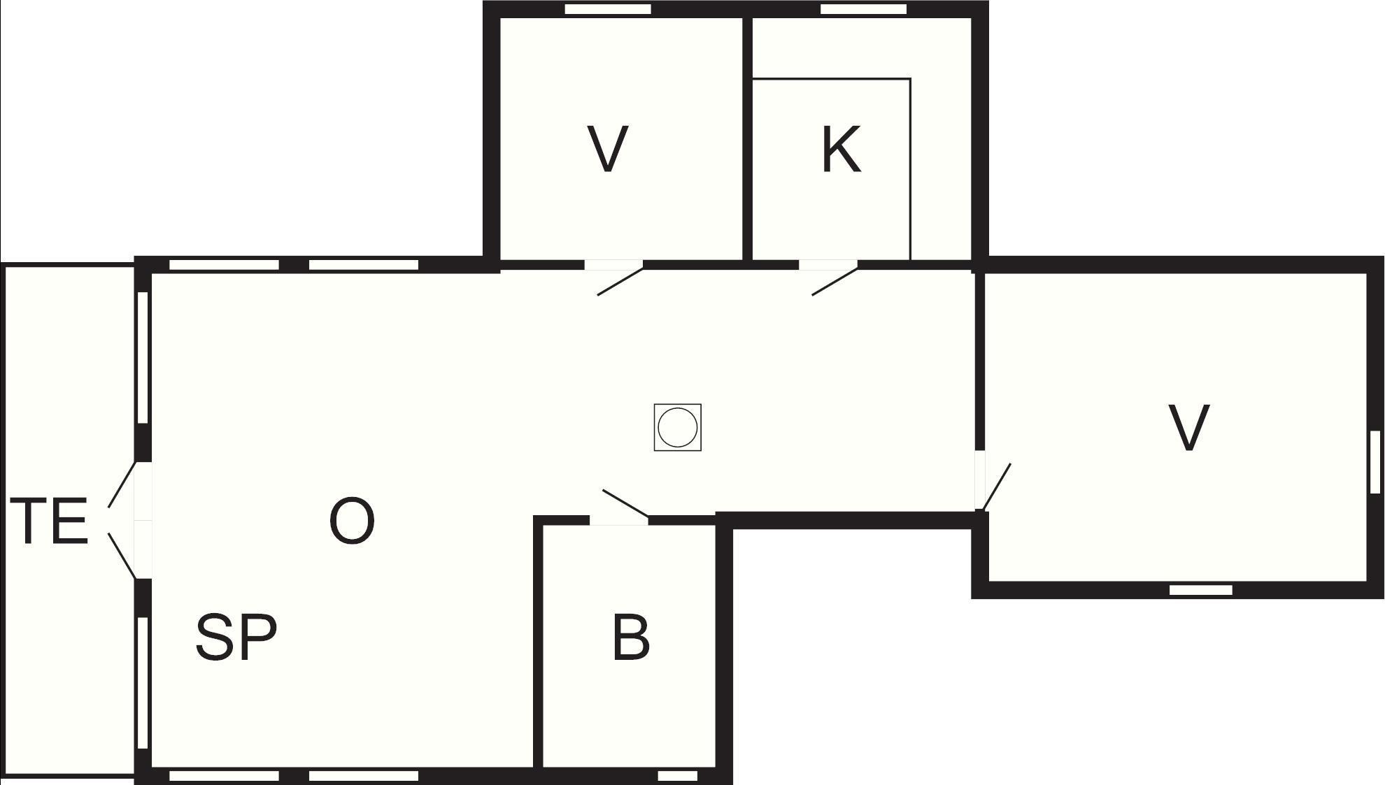 1 Opholdsstue: Brændeovn, radio, tv