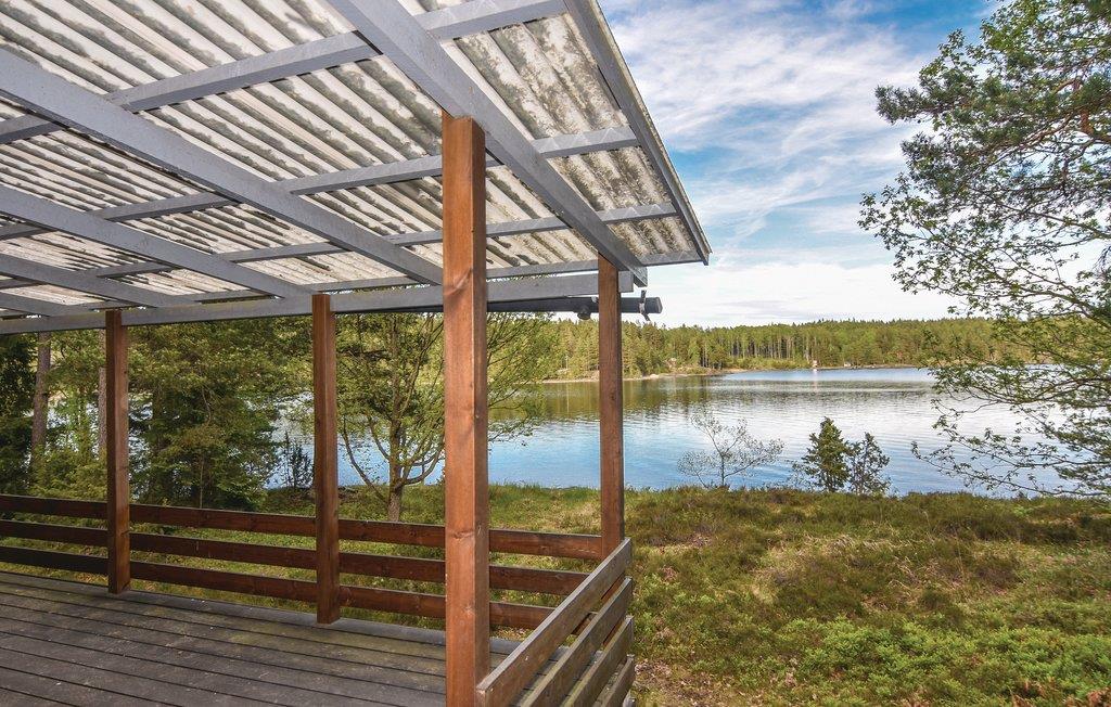 Udenfor er der en stor, dejlig terrasse med tag til rådighed, så I kan tilbringe de smukke lyse aftener med familie og venner. Det naturskønne område er bevokset med skov, og I kan også holde øje med bær og spiselige svampe. Hvis I er særligt heldige, spotter I en elg.