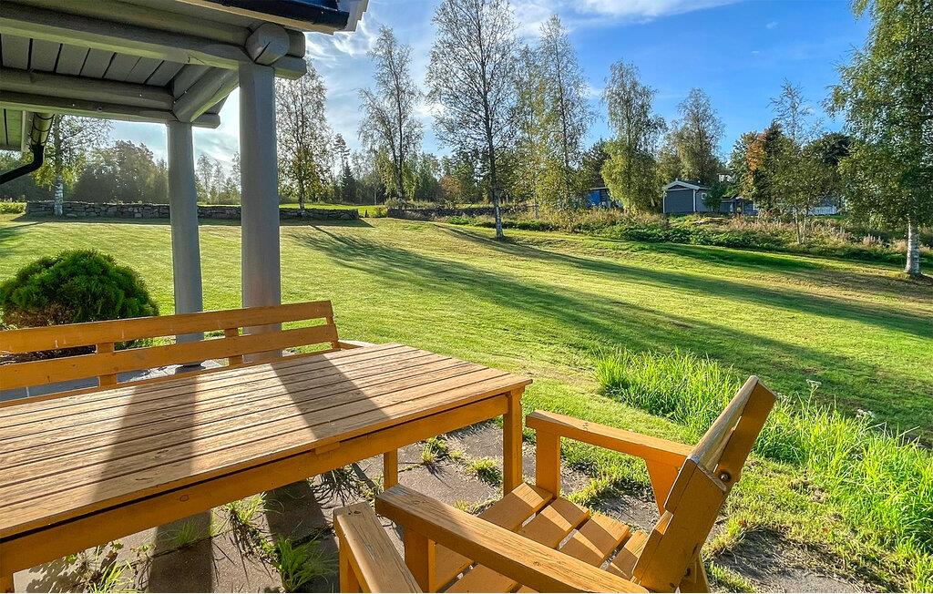 Træd ud på terrassen og nyd freden og roen midt i naturen. Tag plads ved træbordet, Begynd dagene med morgenmad udendørs eller afslut aftenen med et glas vin.