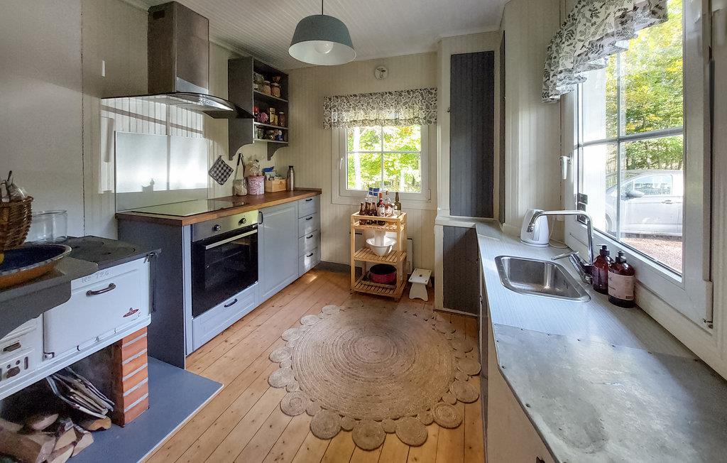 Glæd jer til en fredfyldt pause fra hverdagen! Dette sted er placeret på en smuk, stor naturgrund, nogle få skridt fra Hulta-søen. Boligen er præget af lyse, komfortable rum. Dagslyset strømmer ind i stuen gennem de store vinduespartier, og man får den maleriske natur helt tæt på. Nyd en rolig morgenmad i stuen og se morgentågen langsomt stige op fra søen. Den fine, store terrasse med panoramaudsigt over søen og tætte trætoppe bliver jeres anden stue og omdrejningspunktet for de fleste fælles aktiviteter. Der er et lille "cowboyland" på grunden, hvor børn og voksne frit kan boltre sig. Gå de få skridt ned til søen og kast fiskesnøren ud i vandet. Hvis I er heldige, kan I grille den friskfangede fisk samme aften. Er der ikke bid, kan I samle svampe og bær eller bade i søen. I finder et badeområde med badebroer nogle få minutters gang fra huset. Vandrestien rundt om søen går lige foran huset.