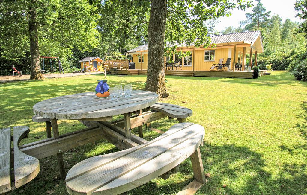 Haven er et paradis for både store og små. Her byder huset på noget unikt i form af en bålhytte i nordlandsk stil, som er typisk for det nordlige Sverige. Her kan hele familien tilbringe aftenerne foran den knitrende ild, selv når det er lidt koldere udenfor. Det fint udformede legehus med en rigtig fin legeplads og masser af aktiviteter vil sikkert give de små julelys i øjnene.