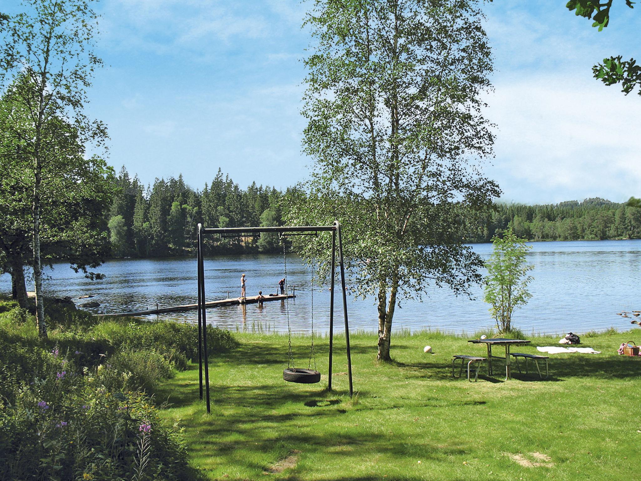 Fisherman's house "Ängasjö Ekbacken". 5 km from the centre of Östra Frölunda, 5 km from the centre of Mårdaklev, 70 km from the centre of Borås, on a slope, 200 m from the lake, 1 km from the river, in the countryside. Bathing jetty. Private: natural state property 1'400 m2 with trees, meadow. Available: canoe (extra). Rowing boat (on request), parking (for 2 cars) on the premises. Shop 12 km, supermarket 25 km, bus stop 1.4 km, railway station "Borås" 60 km, ferry "Helsingborg" 165 km, sandy beach 200 m, indoor swimming pool 25 km. Fishing possibilities 200 m.