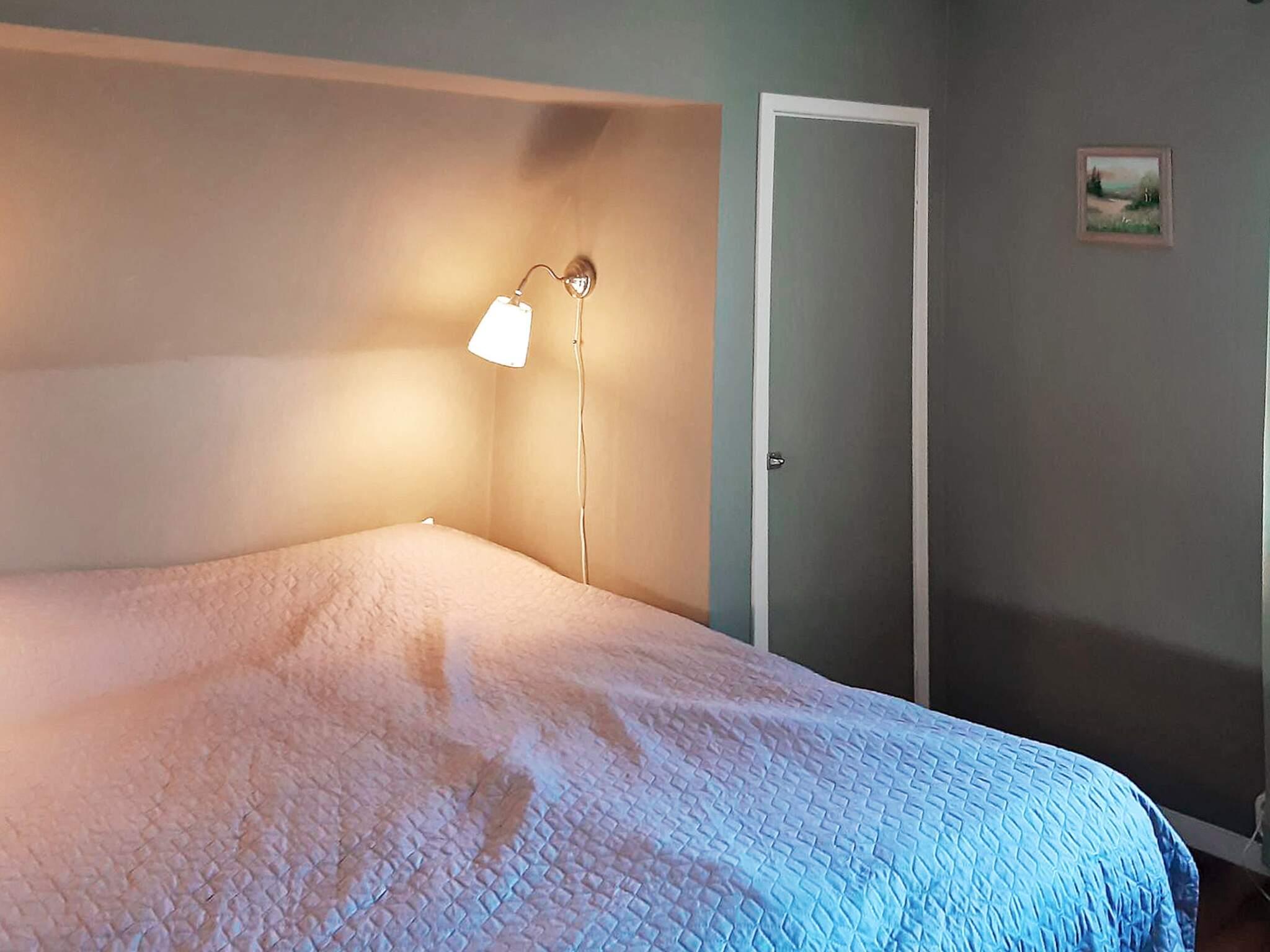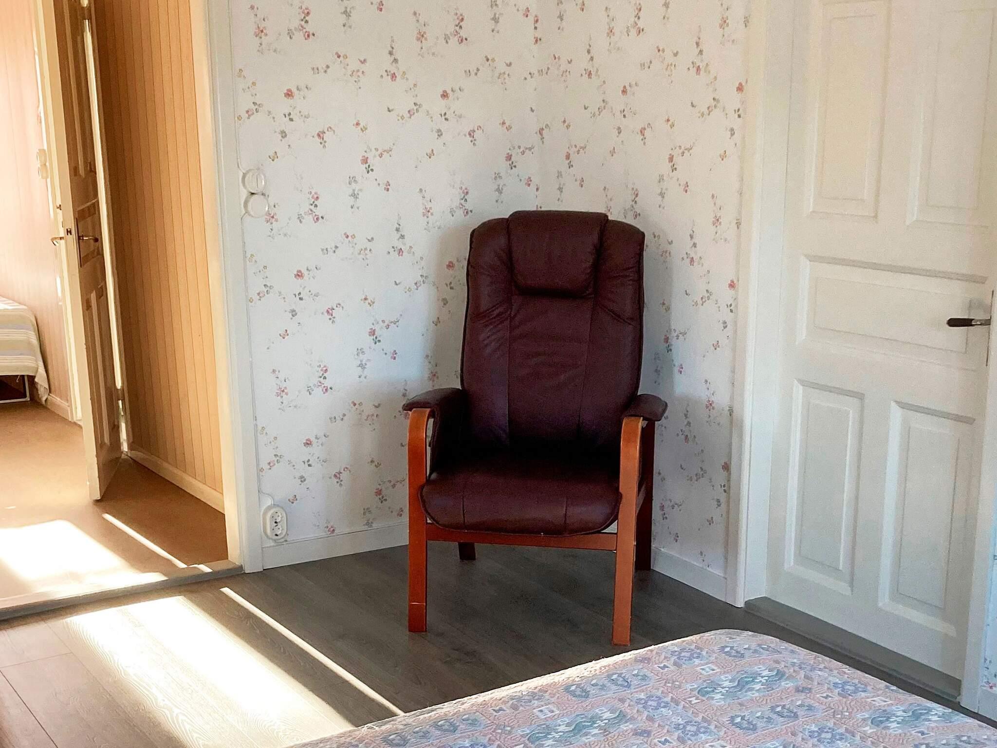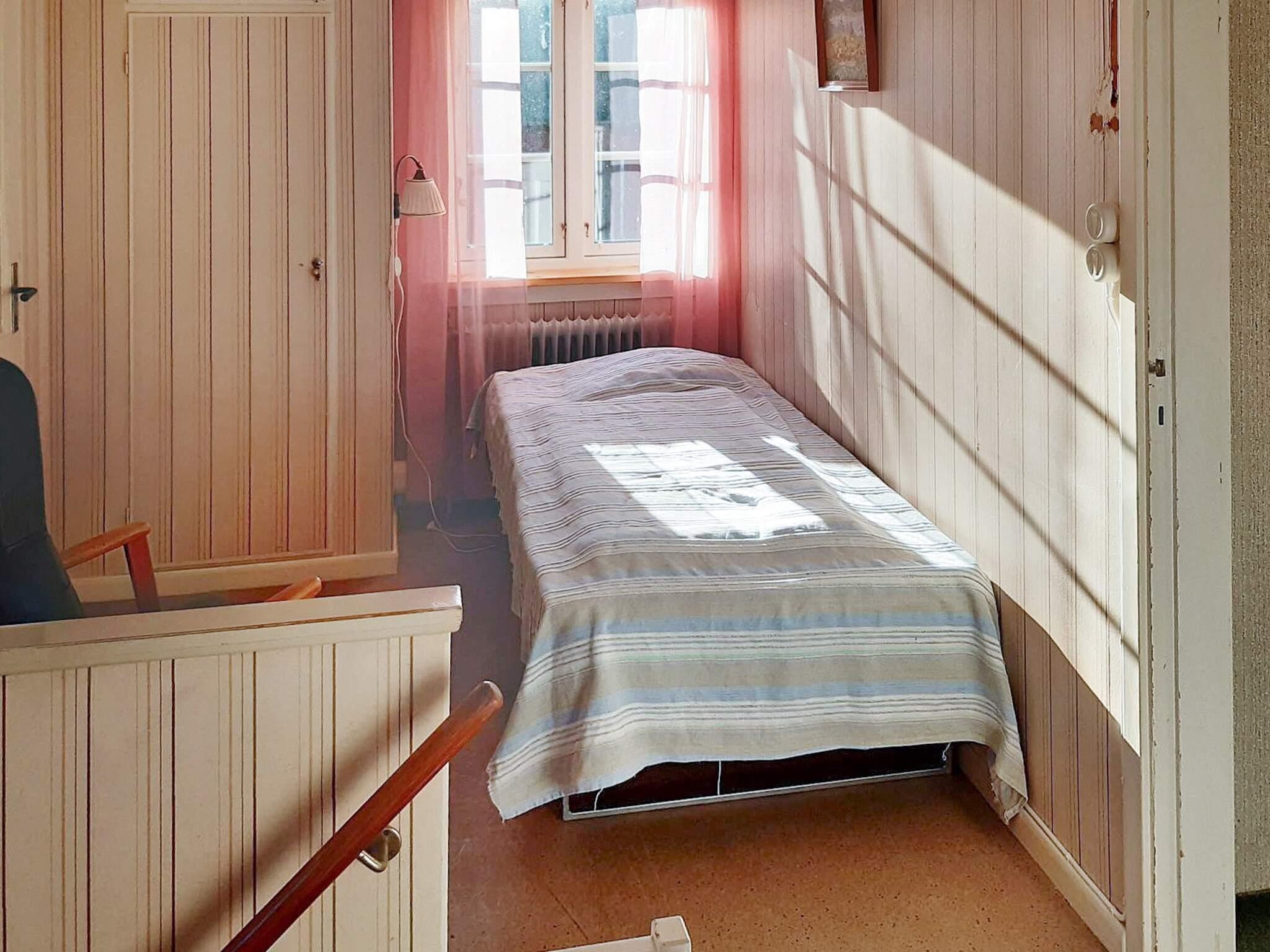 Via en något brantare trappa än vanligt kommer man till hallen som har en spjälsäng för den yngsta familjemedlemmen och en enkelsäng ifall någon vuxen vill sova i närheten. Innanför ligger det första sovrummet med två enkelsängar – 80cm. Via en mindre hall kommer man till nästa sovrum som har en dubbelsäng – 180cm. Det sista sovrummet på övervåningen har två enkelsängar – 160cm. Totalt kan man sova 7 personer samt en liten i spjälsängen.