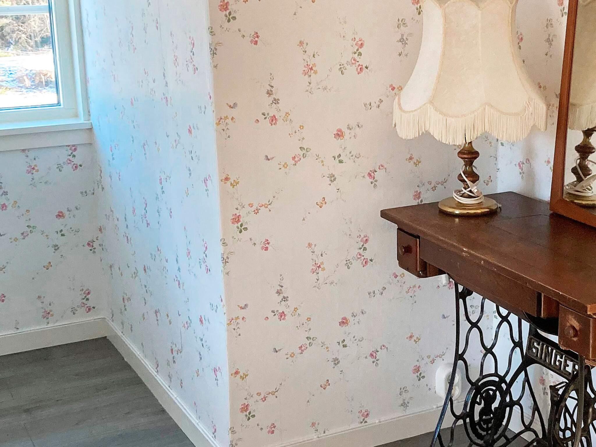 Huset är i två plan och har en lantligt bevarad stil med rymliga sovrum på ovanvåningen och trevliga sällskapsytor på nedre plan. Entré med hall som leder in till ett rymligt kök i gammal stil och köksbord med kökssoffa och stolar för att avnjuta frukostmålet. Från köket kommer man in till matsalen med stort rymligt matbord med stolar och utgång till trädgård via balkongdörren. Innanför ligger vardagsrummet med soffa, fåtöljer och TV.