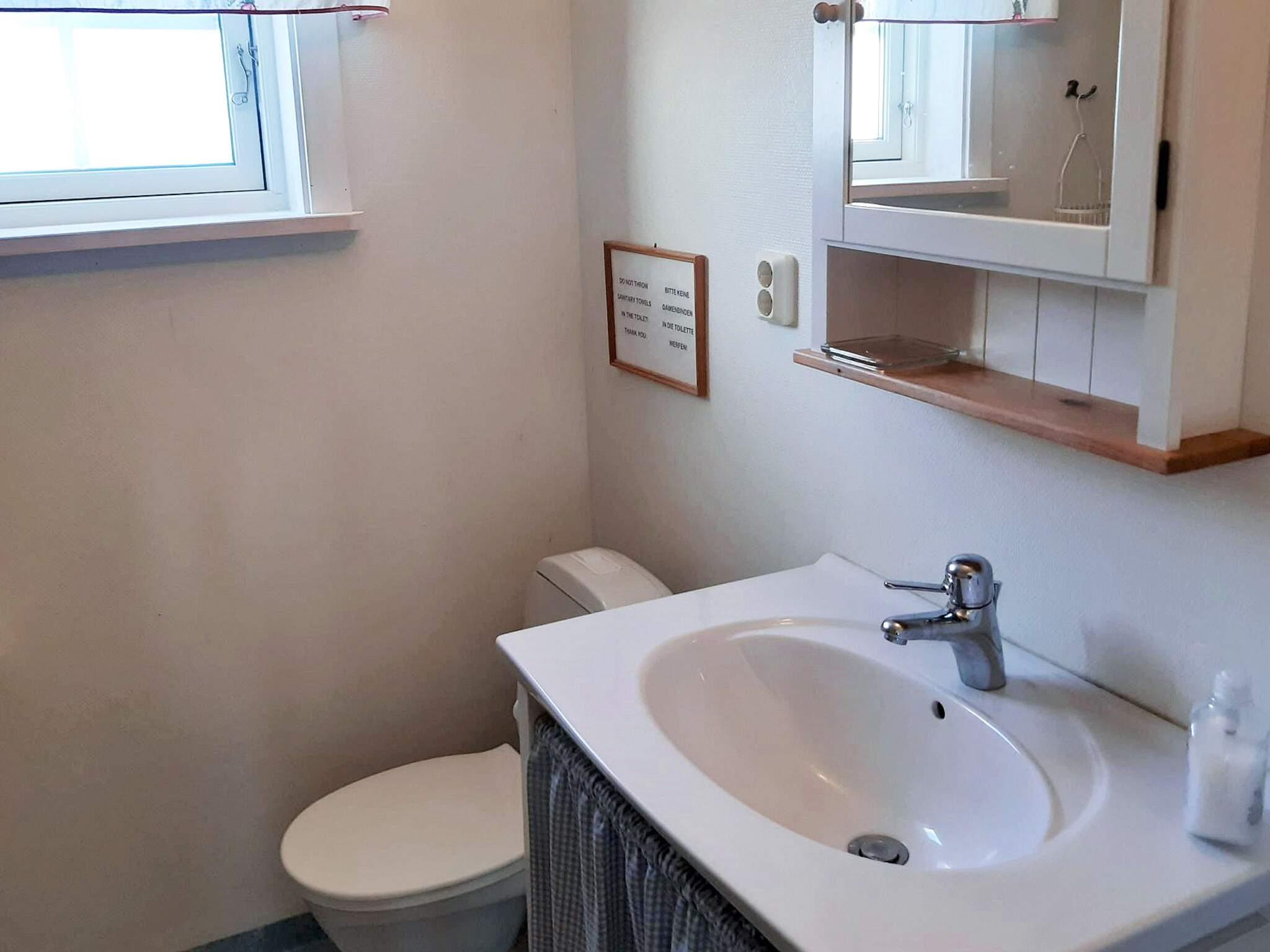 Bad/wc: vaskemaskine, wc, håndvask, bruser