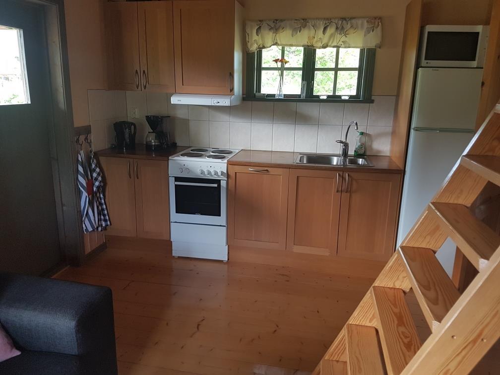Feriehuset er på 40 m2, og der er 4 senge. To af disse senge står på en hyggelig hems/soveloft, og de to andre senge finder I i soveværelset i stueetagen.