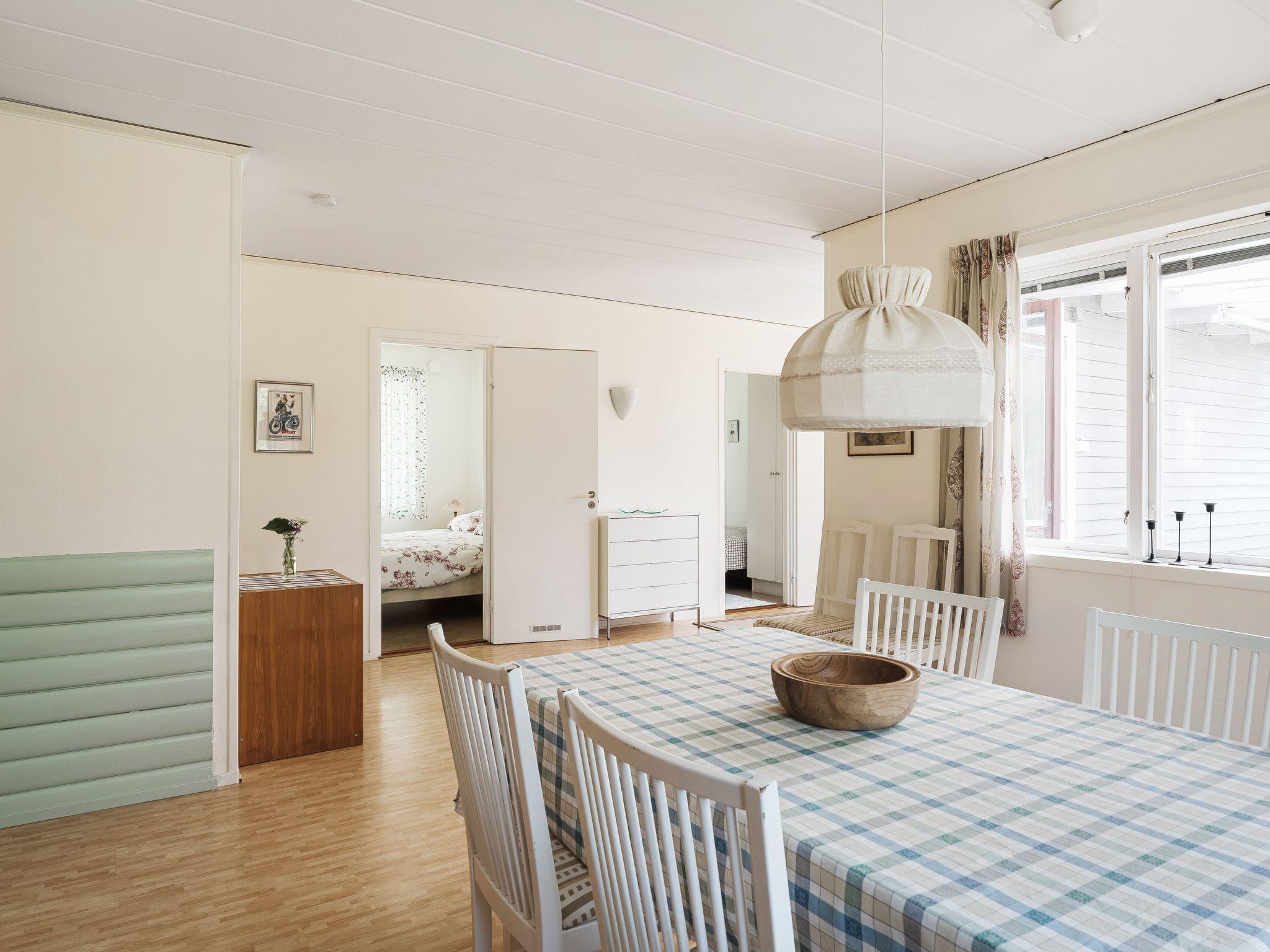 "Lindby Pärlan", 3-room house 84 m2. Bright, cosy furnishings: living/sleeping room with 1 sofabed, dining table, TV and DVD. Exit to the veranda. 1 room with 2 beds (90 cm, length 200 cm). 1 room with 1 double bed (2 x 80 cm, length 200 cm). Open kitchen (4 hot plates, oven, dishwasher, microwave, freezer, electric coffee machine) with dining table. Shower/WC. Electric heating. Wooden floors. Terrace furniture. View of the lake. Facilities: washing machine, children's high chair, baby cot. Please note: non-smokers only. Smoke alarm, fire extinguisher. Fridge and freezer approx. 120 l. Please note: the owner only accepts bookings for touristic reasons. STH150
