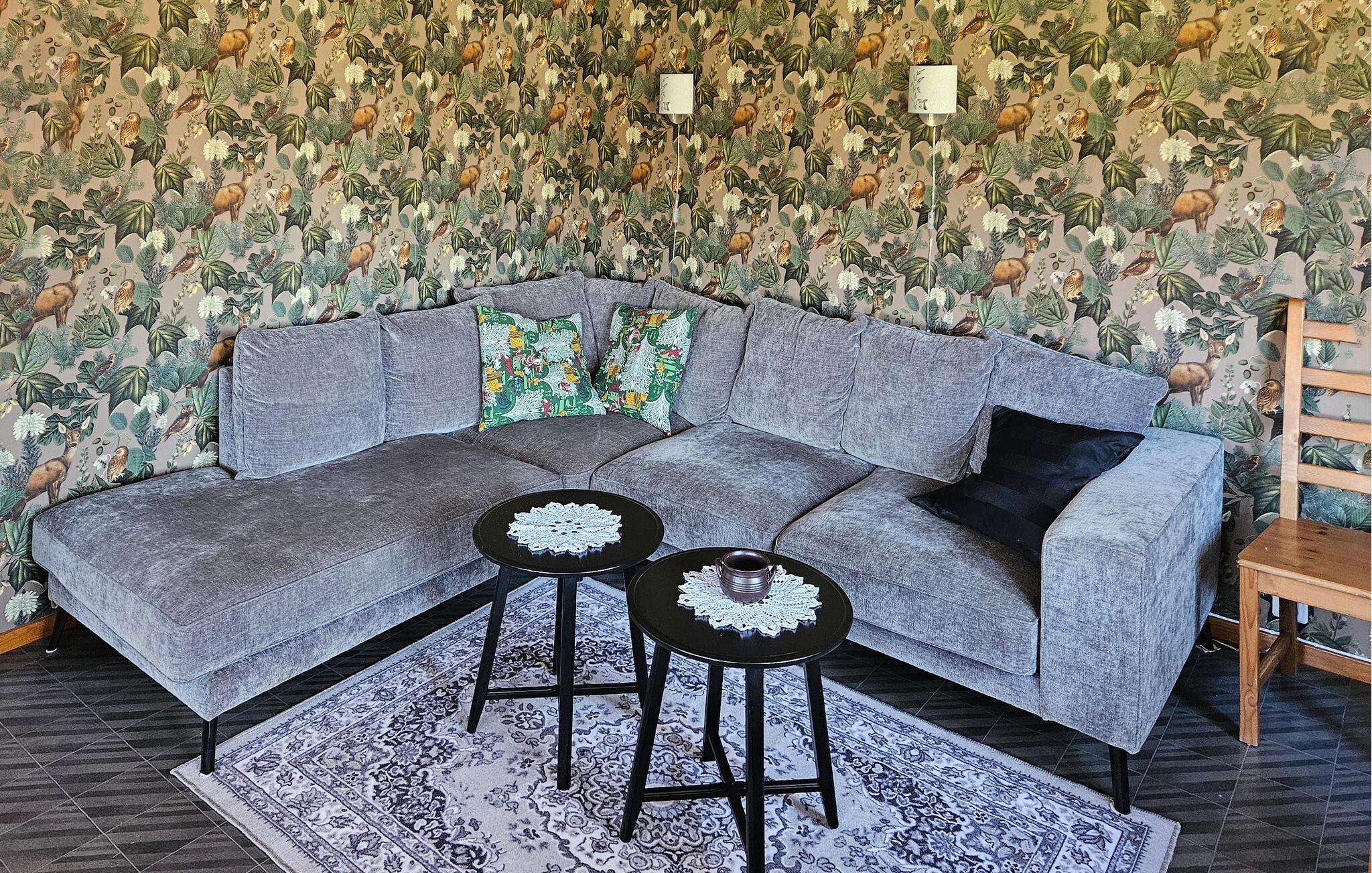 Velkommen til dette indbydende træhus, der ligger tæt på sø, natur og skov, og som danner rammen om en herlig ferie med den større familie. Indvendigt emmer det af charme med bløde møbler, varme trælofter og pæn kunst på væggene, der giver det indre et hjemligt strejf og gør det nemt at sænke skuldrene med det samme, I ankommer. Køkkenet er ganske veludstyret, så tag jer endelig god tid til at kræse om livretterne, inden I runder aftenen af ved brændeovnen med hver jeres bog eller brætspil til sent.