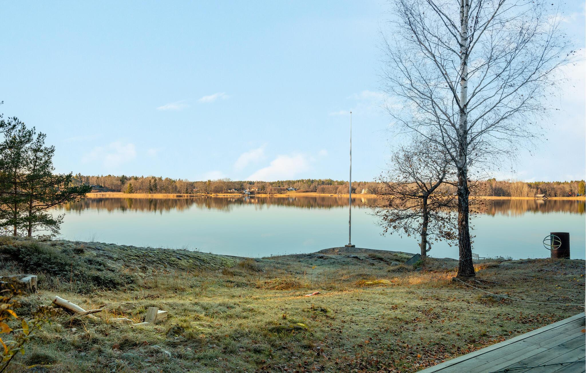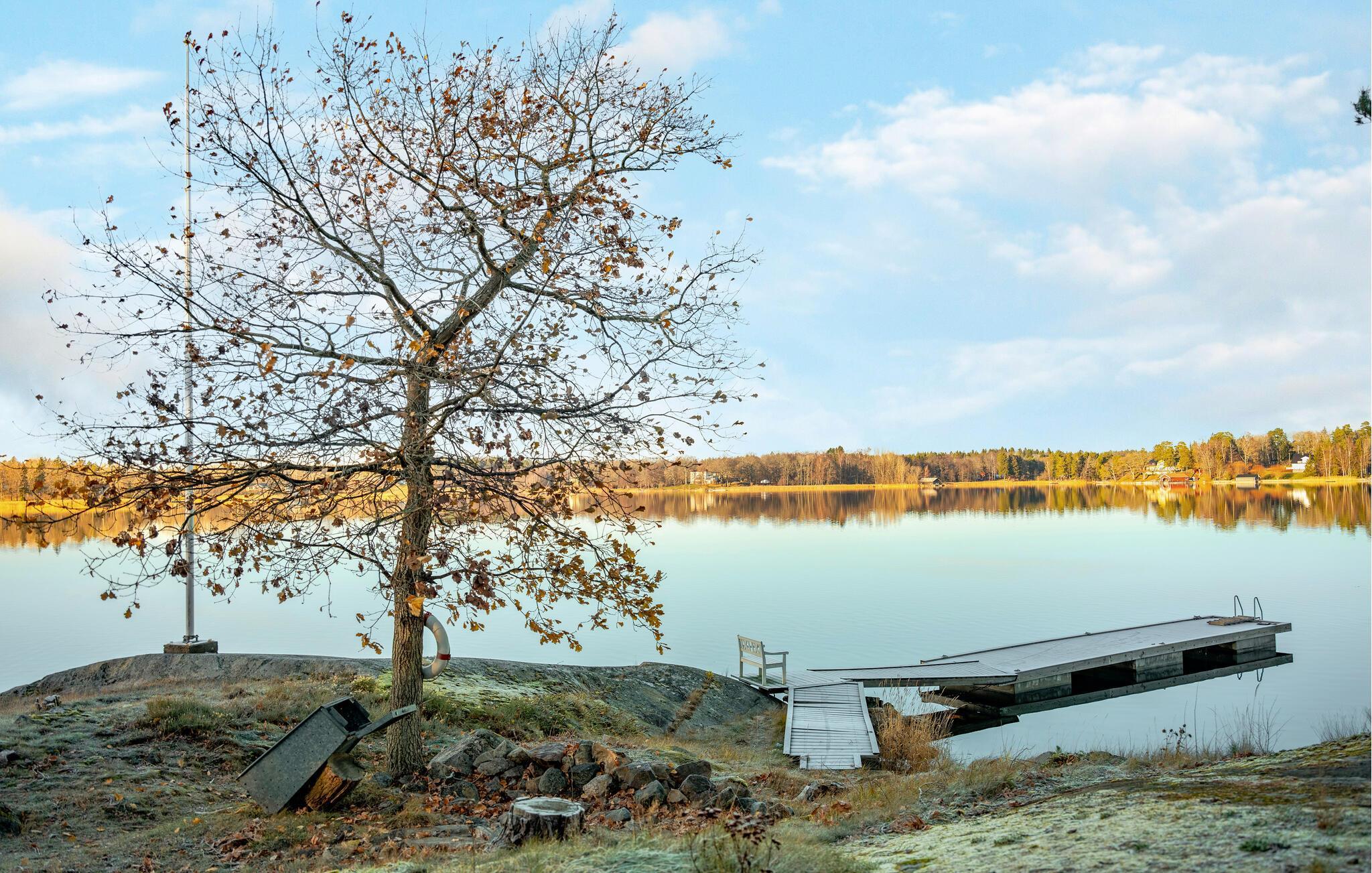 Udenfor er der en terrasse med direkte udsigt over søen - det ideelle sted for en picnic eller afslappende solbadning. Brug den private badebro til en forfriskende svømmetur om sommeren, gør jer godt tilpas på bænken med et glas vin, jog rundt om søen eller organiser stemningsfulde grillaftener.