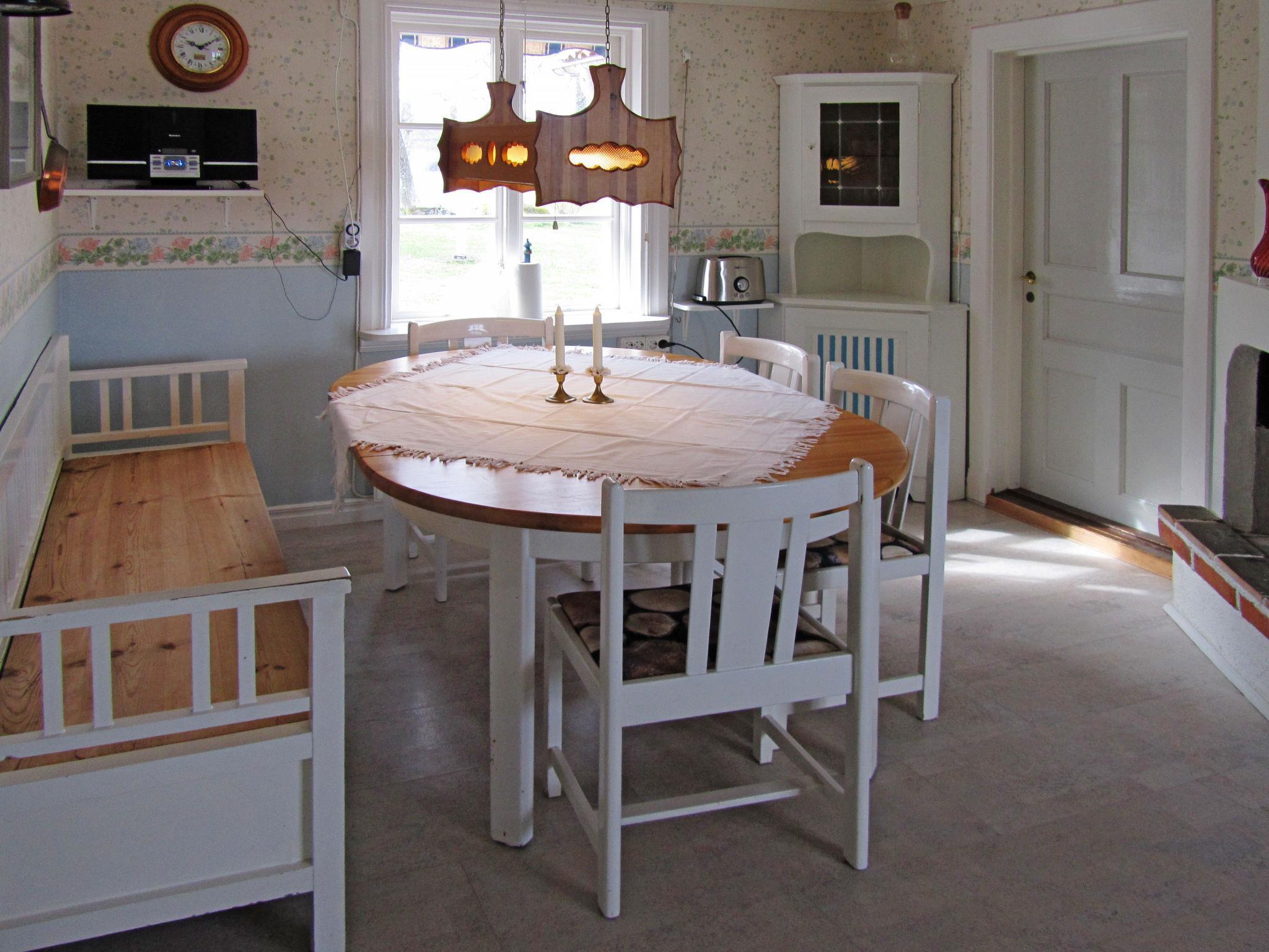 "Stora Gryten", 4-room house 145 m2 on 2 levels. Cosy furnishings: living/dining room with Scandinavian wood stove and dining table. Exit to the veranda. Open kitchen (oven, dishwasher, 4 ceramic glass hob hotplates, microwave, freezer, electric coffee machine) with open-hearth fireplace (only for decoration). Shower/WC. Upper floor: living/sleeping room with sloping ceilings with 1 double sofabed, Scandinavian wood stove and satellite TV. 1 room with sloping ceilings with 1 double bed. 1 room with sloping ceilings with 2 beds. Shower/WC. Heating. Wooden floors. View of the lake. Facilities: washing machine, children's high chair, baby cot. Internet (WiFi, free). Please note: non-smoking house. Smoke alarm, fire extinguisher. Freezer approx. 60 l.