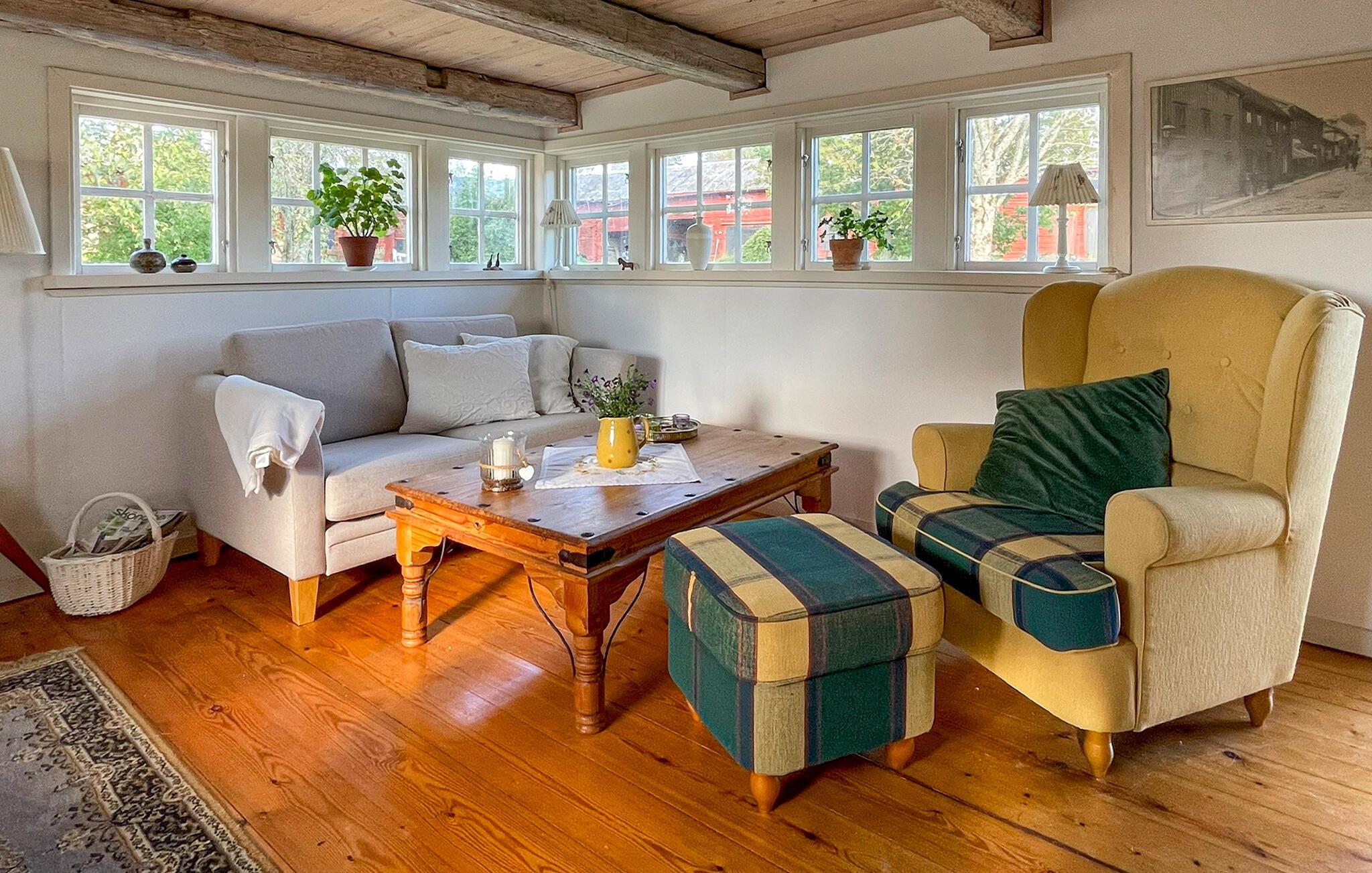 Beliggende i maleriske landlige omgivelser forkæler dette charmerende hus jer med en fortryllende udsigt over naturen. Det omhyggeligt restaurerede og kærligt møblerede interiør lover harmoniske timer med familien, mens I planlægger jeres aktiviteter over fælles måltider og lader hverdagen forsvinde. Glæd jer til hyggelige timer med læsning eller afslapning om aftenen med et brætspil.