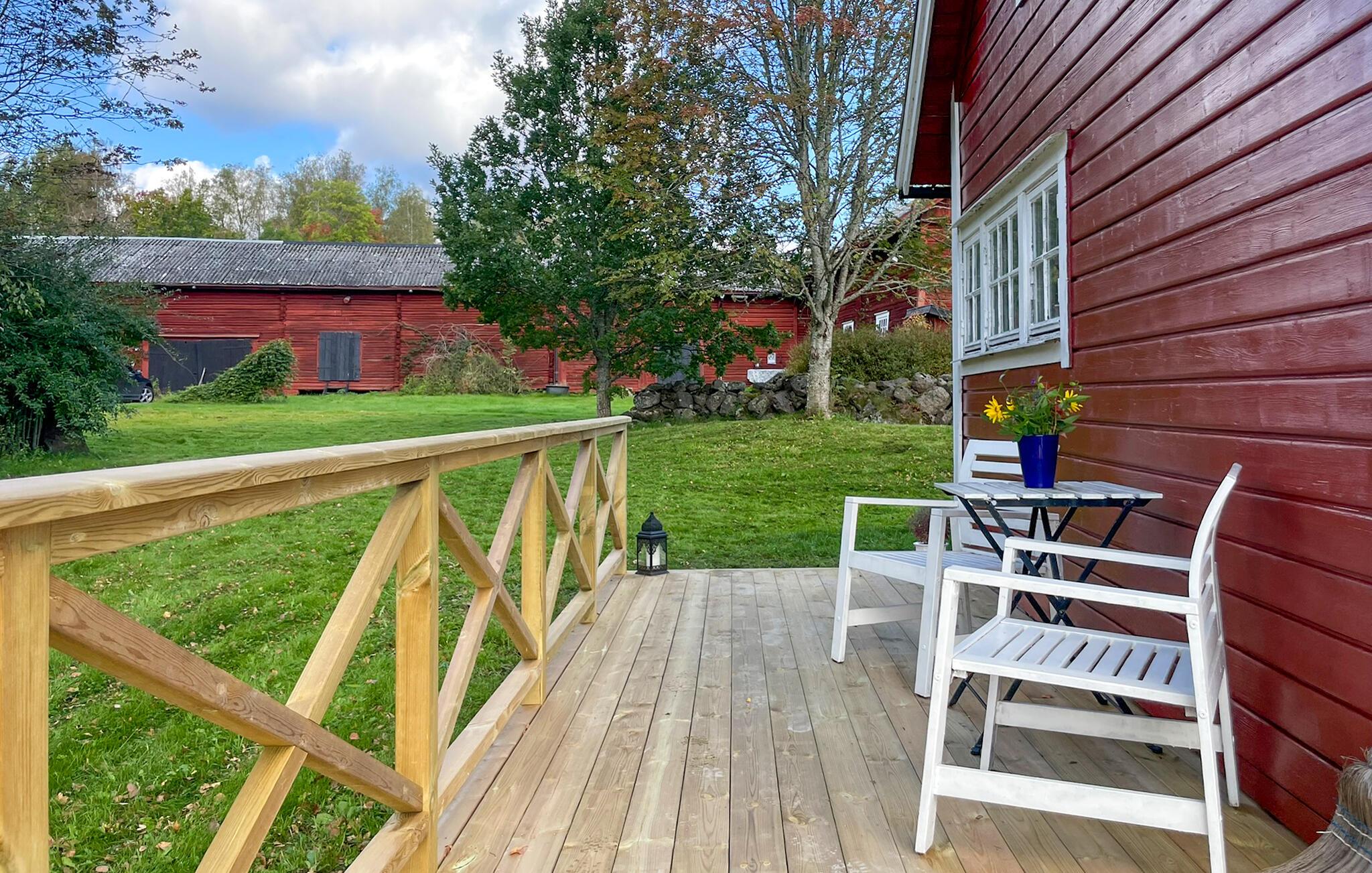 Den store, smukke terrasse er det ideelle sted til morgenmad i den milde morgensol eller stemningsfulde grillfester. Lad børnene udforske naturen legende i den friske luft og nyde den fredelige atmosfære med et glas vin.