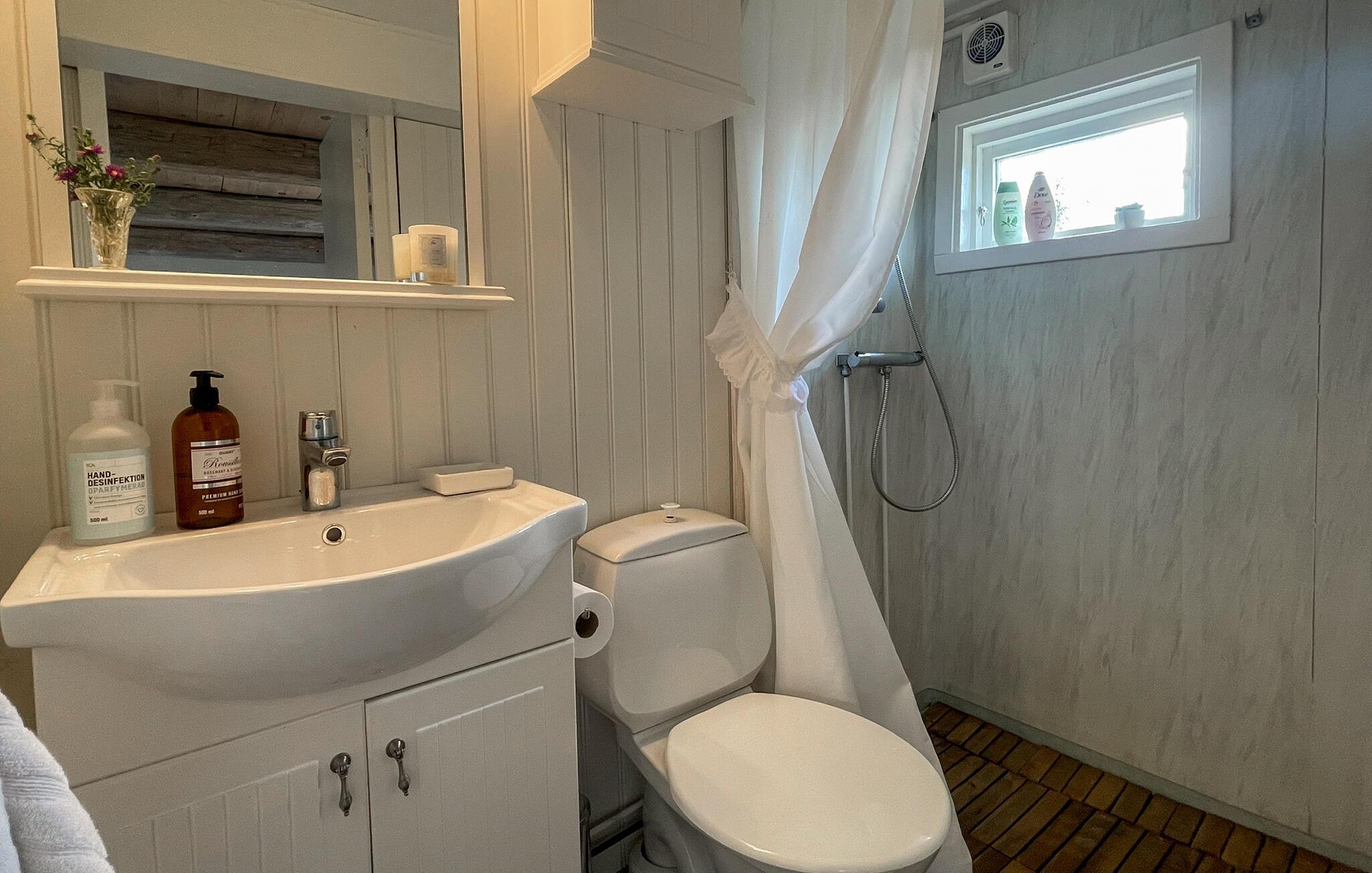 Badeværelse (nr. 1) - WC. Varmt og koldt vand. Bruser