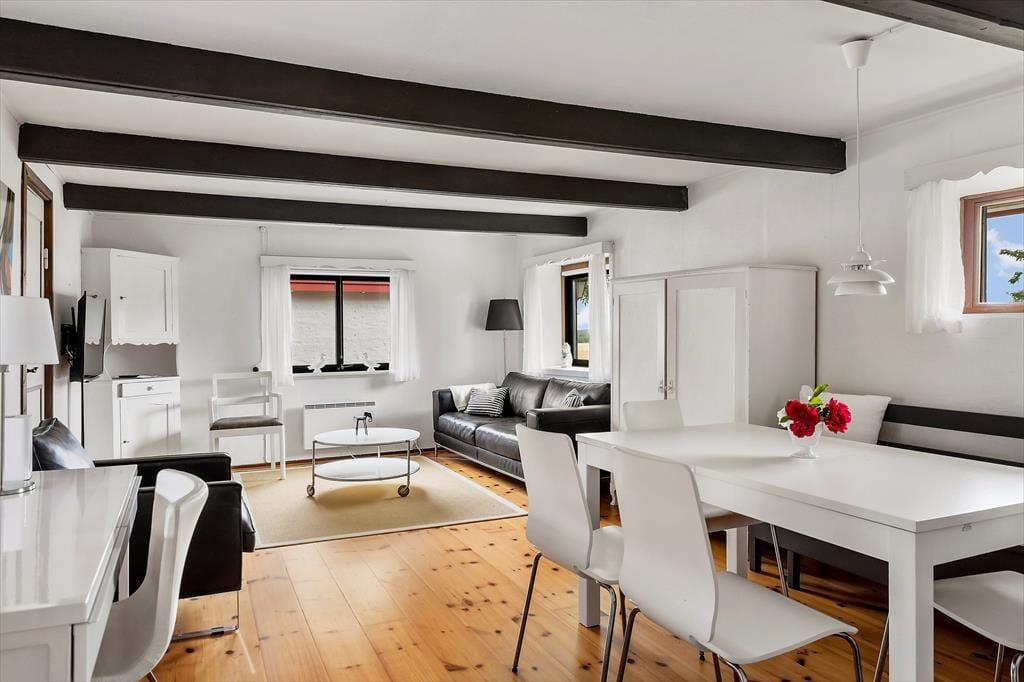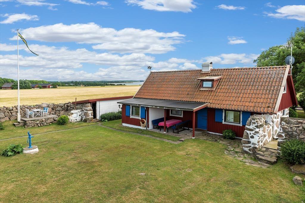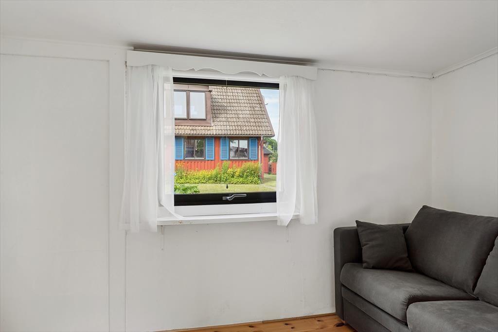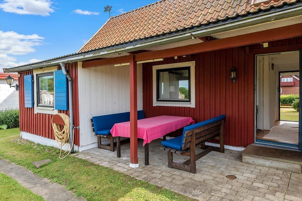 Det 90 m2 store, klassiske svenske hus er renoveret med stor kærlighed for detaljerne. Herved er der hele vejen i gennem lagt vægt på at bevare husets originale charme og struktur. Der er plads til seks personer, fordelt i tre soveværelser, hvoraf to begge råder over to enkeltsenge, som kan stilles sammen, og i det tredje soveværelse er der en sovesofa. Køkkenet er godt udstyret med bl.a. køleskab med frys samt opvaskemaskine. Huset har derudover et badeværelse med bruser og toilet, en hyggelig stue med fjernsyn, radio og CD-anlæg samt åben kamin. Diverse havemøbler, en grill samt carport hører også til dette dejlige sommerhus.
