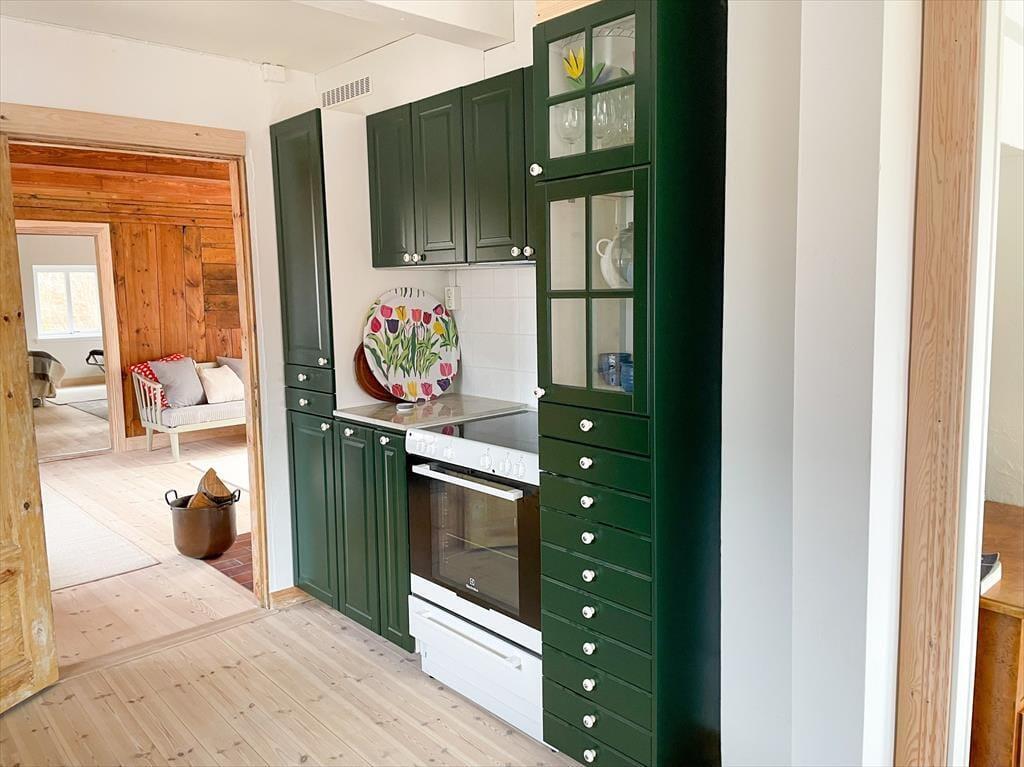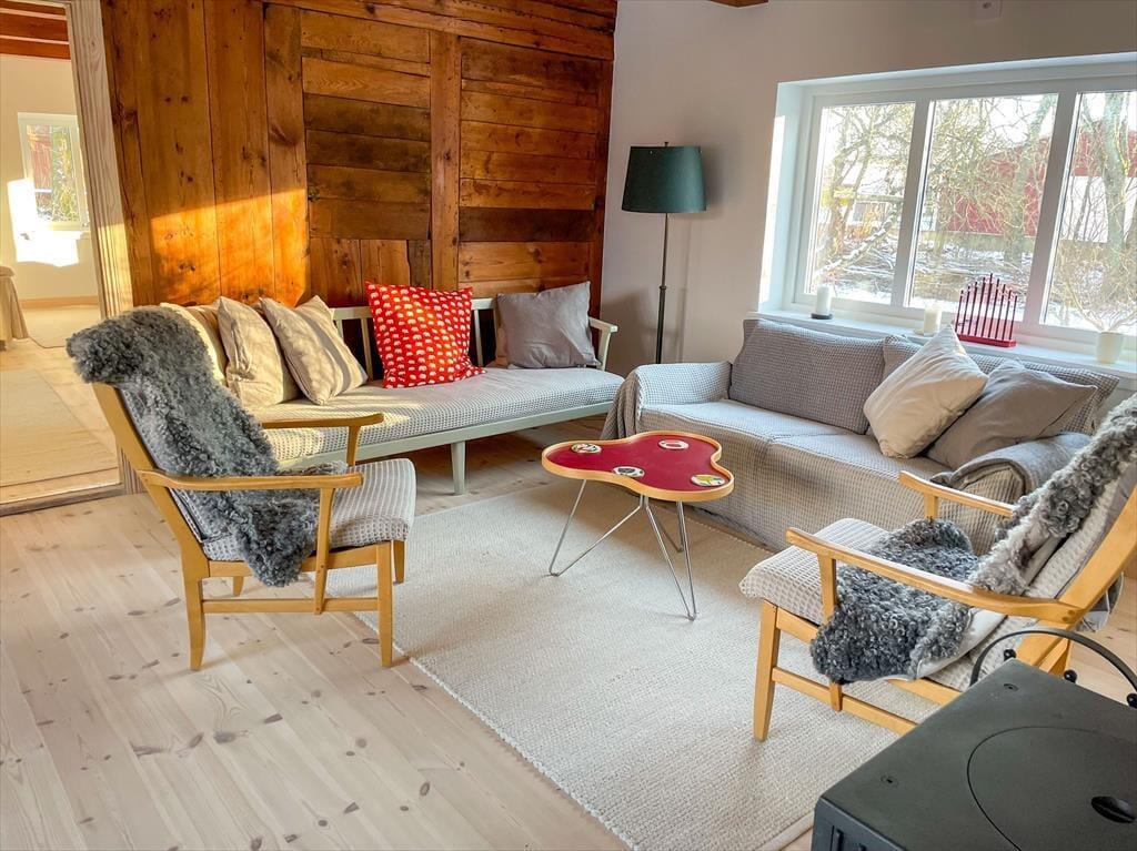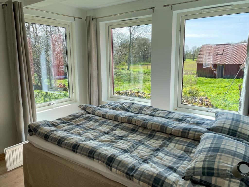 Nyd det landlige, svenske liv i et smagfuldt renoveret gammelt bondehus tæt på børnevenlige strande ved Kattegat.