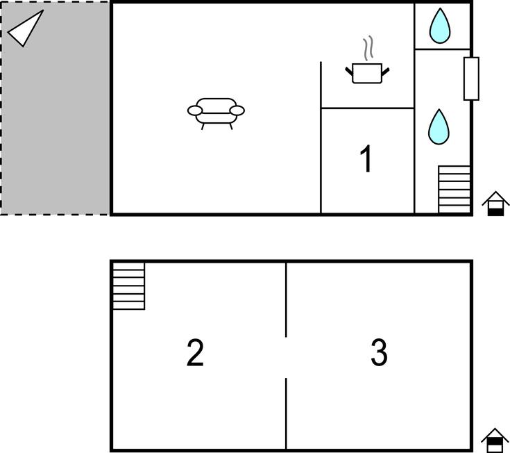 Soveværelse (nr. 3) - 2 Sovepladser. (Enkeltseng(e)).