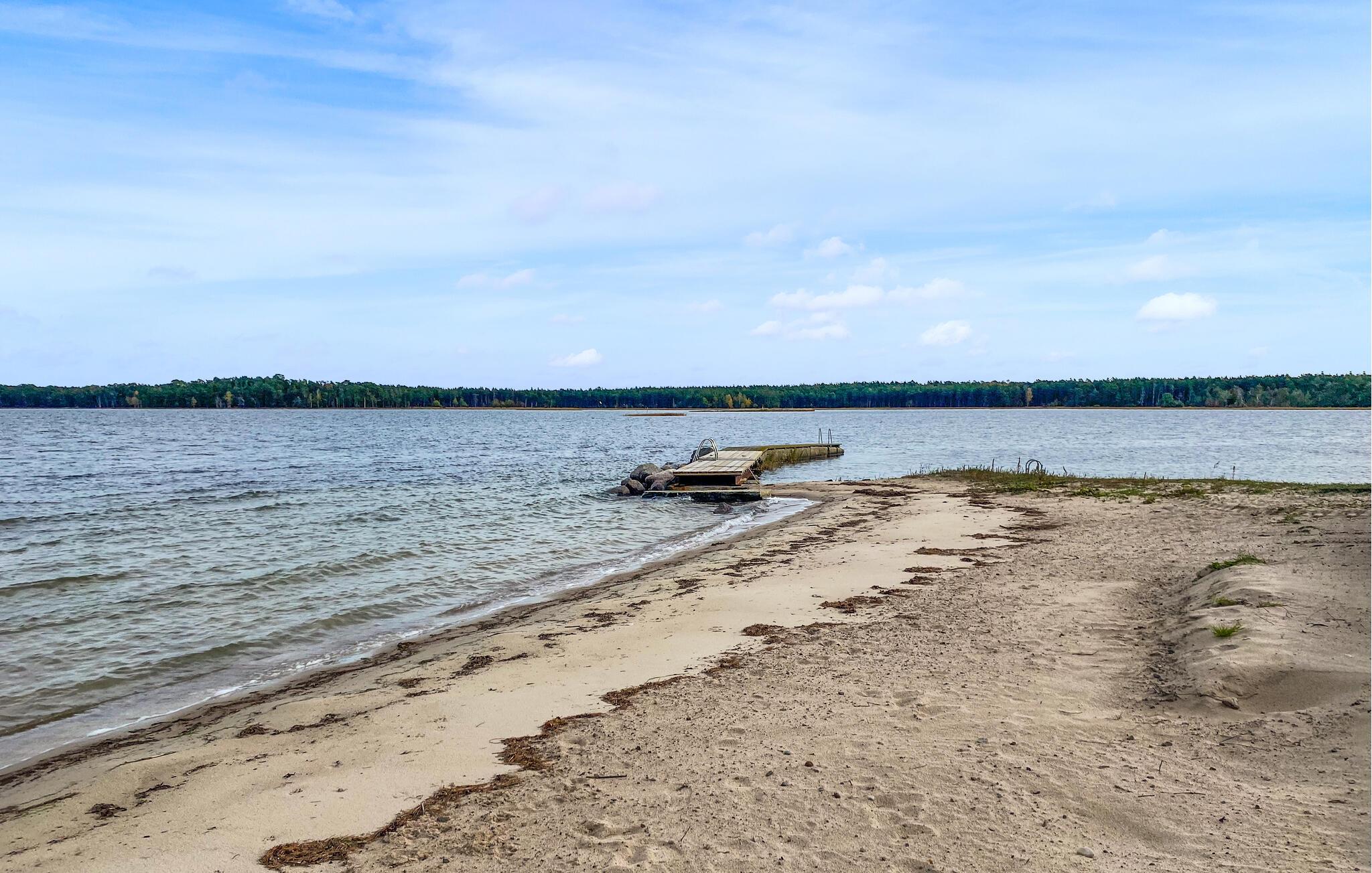 Slap af med familien i dette komfortable feriehus ved havet. Dette velholdte feriehus byder jer velkommen kun få skridt fra en smuk sandstrand med en badebro og inviterer jer til en afslappende pause i sit lyse og hyggelige interiør. Tilbered lækre måltider i det åbne køkken og planlæg jeres aktiviteter ved det indbydende spisebord. Efter en begivenhedsrig dag i naturen kan I krybe sammen i sofaen til en sjov spilleaften eller en stille bog. Gå en tur ned til stranden for en forfriskende dukkert og nyd en god morgenmad på verandaen om morgenen. Lad jeres børn få nye venner, mens de leger på den rummelige, fælles grund, og nyd hyggelige samtaler omkring grillen. Prøv lykken med fiskeri, tag lange vandreture og pluk blåbær om efteråret. Gå en tur til det nærliggende Långe Erik fyr og udforsk den populære Trollskov.