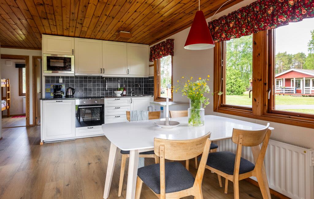 Tilbring en afslappende ferie i dette roligt beliggende feriehus med havudsigt. Dette hus kombinerer rustik charme med en afslappet atmosfære. Varme trætoner, blød belysning og en behagelig sofa skaber et sted, hvor tiden går langsommere. Forkæl jer selv med en kop kaffe, lyt til en god podcast, eller nyd et glas vin om aftenen, mens I læser jeres ferieroman. Start dagen på verandaen med en god morgenmad og lyt til naturens ro. Omgivet af frodigt grønt er det nemt at lade tankerne fare og nyde øjeblikket. Når solen langsomt går ned, tænd grillen og nyd aftenen med lækker mad og havudsigt. Havet med sin fine sandstrand ligger kun få meter væk og inviterer jer til at bade, svømme og fiske. Gå en tur til Långe Erik fyr, der stolt står vagt over kysten, eller udforsk den legendariske Trollskog, hvor knudrede træer kaster mystiske skygger. Og når efteråret kommer, kan I gå på blåbærjagt i den omkringliggende skov.