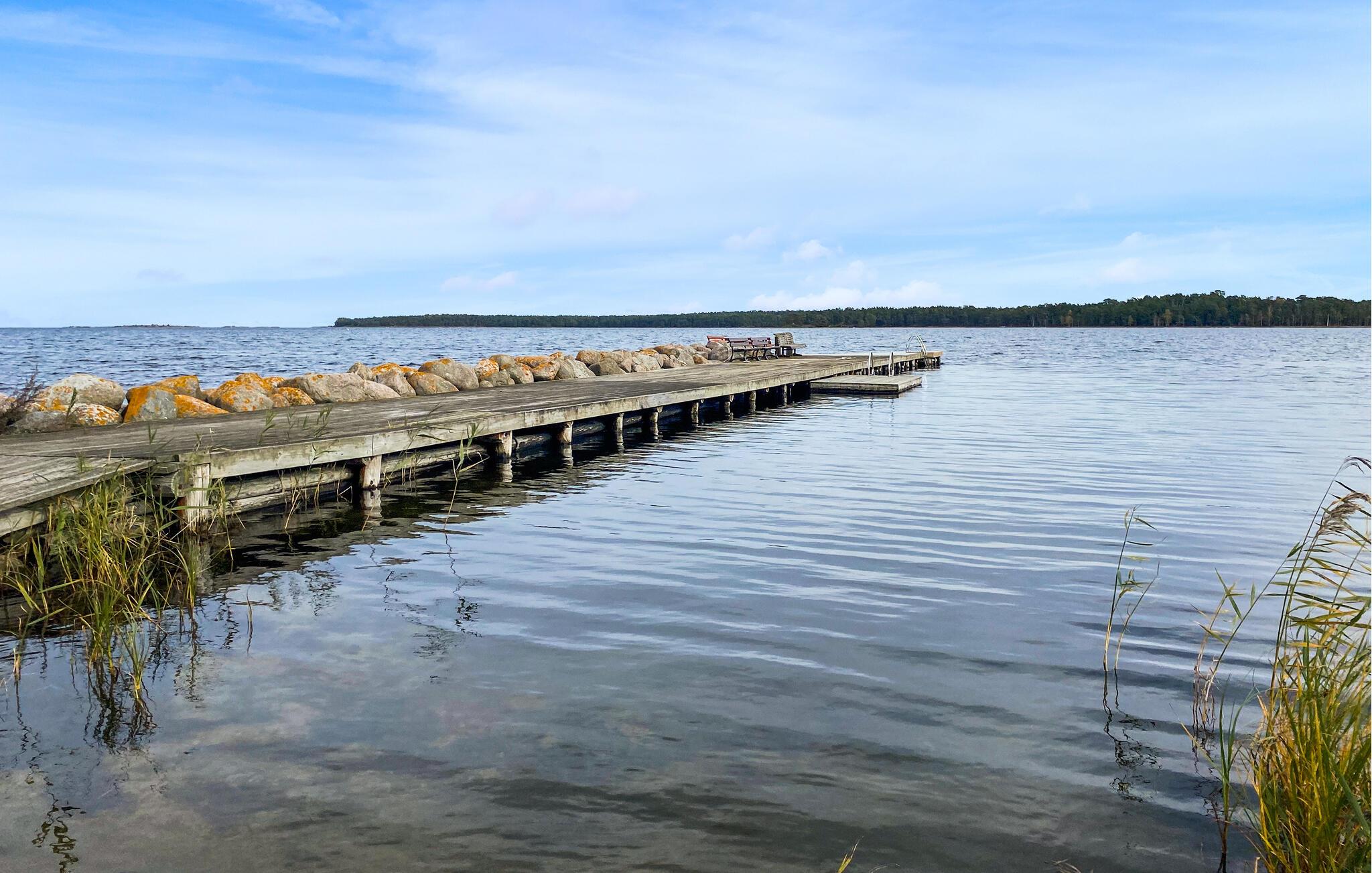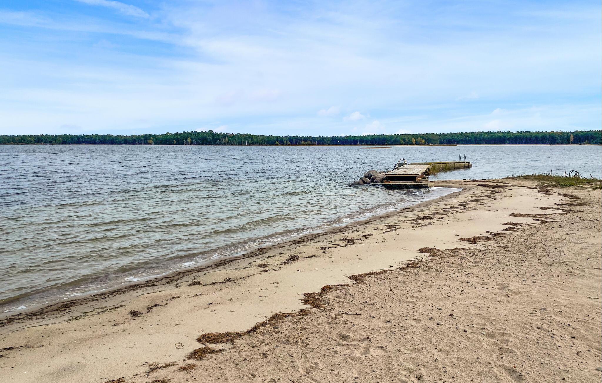Oplev en afslappende ferie i dette komfortable feriehus ved havet. Dette velholdte feriehus byder jer velkommen kun få skridt fra en smuk sandstrand med en badebro og inviterer jer til en afslappende ferie i sit lyse og hyggelige interiør. Tilbered lækre måltider i det åbne køkken og planlæg jeres aktiviteter ved det indbydende spisebord. Efter en begivenhedsrig dag i naturen kan I krybe sammen i sofaen til en sjov spilleaften eller en stille bog. Gå en tur ned til stranden for en forfriskende dukkert og nyd en god morgenmad på verandaen om morgenen. Lad jeres børn få nye venner, mens de leger på den rummelige, fælles grund, og nyd hyggelige samtaler omkring grillen. Prøv lykken med fiskeri, tag lange vandreture og pluk blåbær om efteråret. Gå en tur til det nærliggende Långe Erik fyr og udforsk den populære Trollskov med jeres børn.