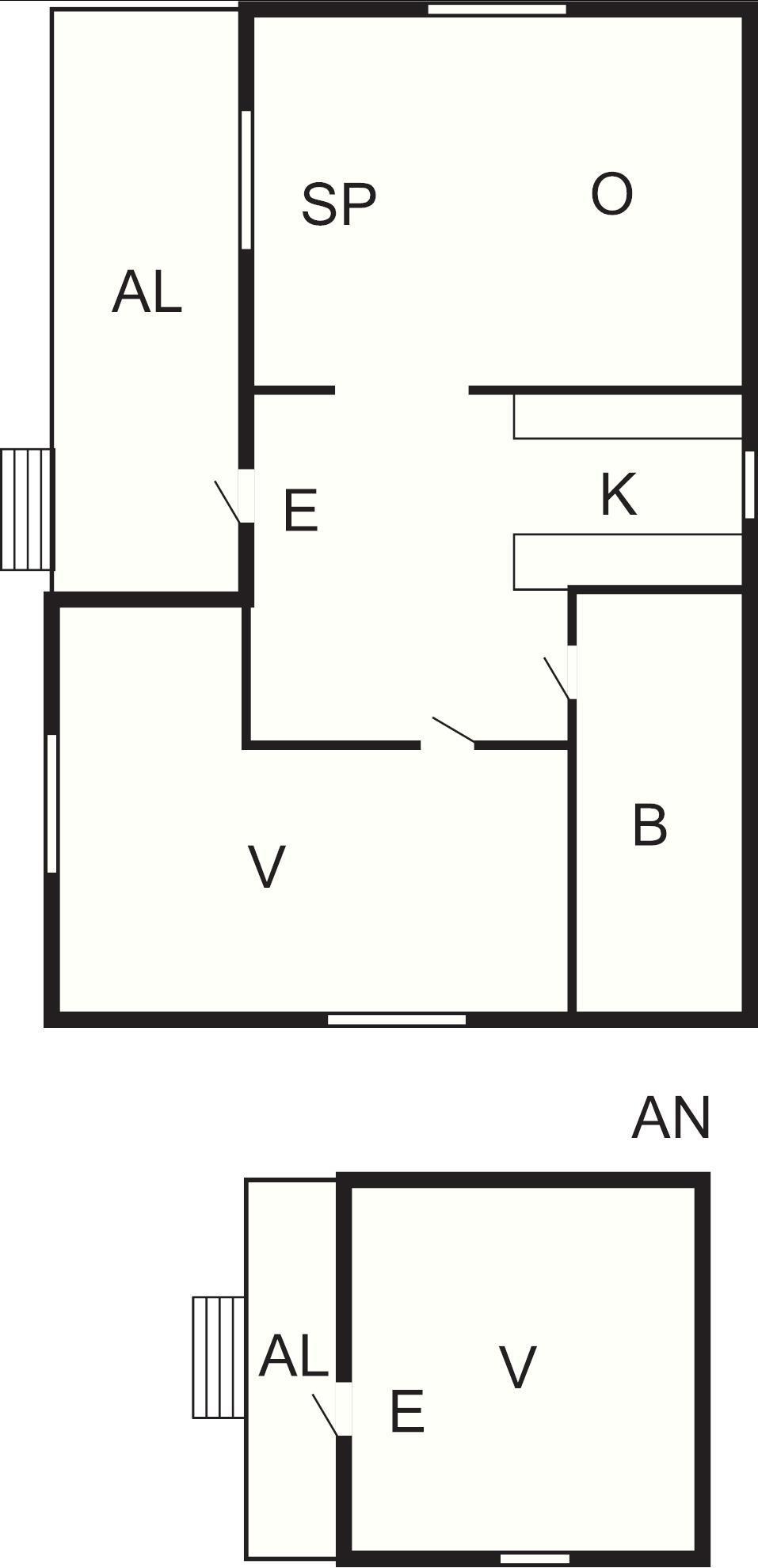 Huset har en bra planlösning med en köks del rakt fram från entrén. Här finns alla bekvämligheter för självhushåll. Ett rymligt vardagsrum med tv, endast lämplig för spel, framför soffa med bädd möjlighet och fåtöljer att koppla av i. Även utdragbart matbord med stolar att samlas kring för gemensamma måltider. Sovrummet med dubbelsäng i den andra delen av huset är rymligt och angränsar till badrummet med dusch. Ett gästhus finns på tomten med ytterligare sovplatser för fyra personer. En våningssäng och en dubbelsäng gör det möjligt att bo många på liten yta. En liten veranda även här att njuta på i skuggan av träden. I trädgården finns stor plats för lek och aktivitet samt en stor kolgrill att använda. På den lilla stigen från trädgården ner till sjön tar man sig enkelt för ett svalkande dopp eller en tur på SUP-brädan som finns att låna vid huset. Nere vid vägen till sjön rekommenderas att gå lite till vänster för att kunna bada och använda bryggan.