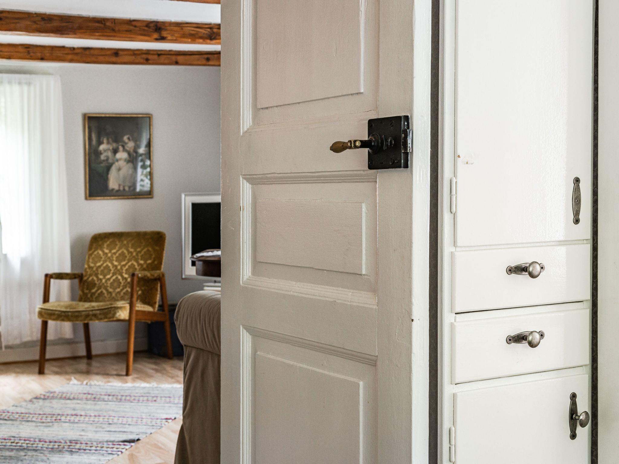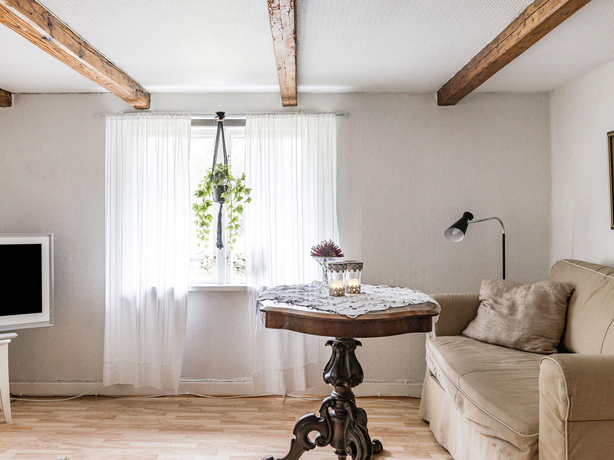 "Angsjö Torp", 1-room house 40 m2. Bright, beautiful furnishings: living/sleeping room, ceiling height 180 - 190 cm, Low door height 170 cm with 1 double sofabed, Scandinavian wood stove and satellite TV. Open living/sleeping room, ceiling height 180 - 190 cm, Low door height 170 cm with 1 bed. Small kitchen (oven, 4 ceramic glass hob hotplates, toaster, kettle, microwave, freezer, electric coffee machine) with dining table. On the lower ground floor: shower/WC. Electric heating. Patio. Terrace furniture, barbecue (portable). Facilities: washing machine, iron. Freezer approx 60 l.