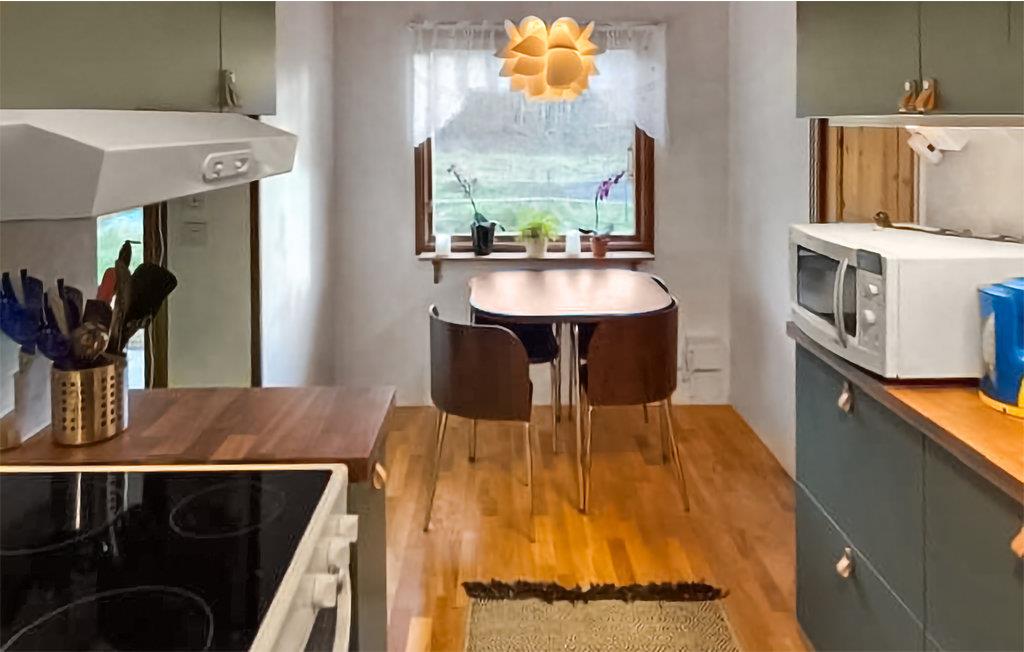 find jer godt til rette med familien i de hyggelige værelser i dette hus, hvor I kan tilbringe en dejlig ferie året rundt. Nyd morgenmaden i køkkenet med en smuk udsigt over området og glæd jer til hyggelige aftener i det indbydende opholdsområde med ild i brændeovnen. I kan også sætte jer ved en brændeovn i udestuen og sludre eller læse meget med udsigt til haven.