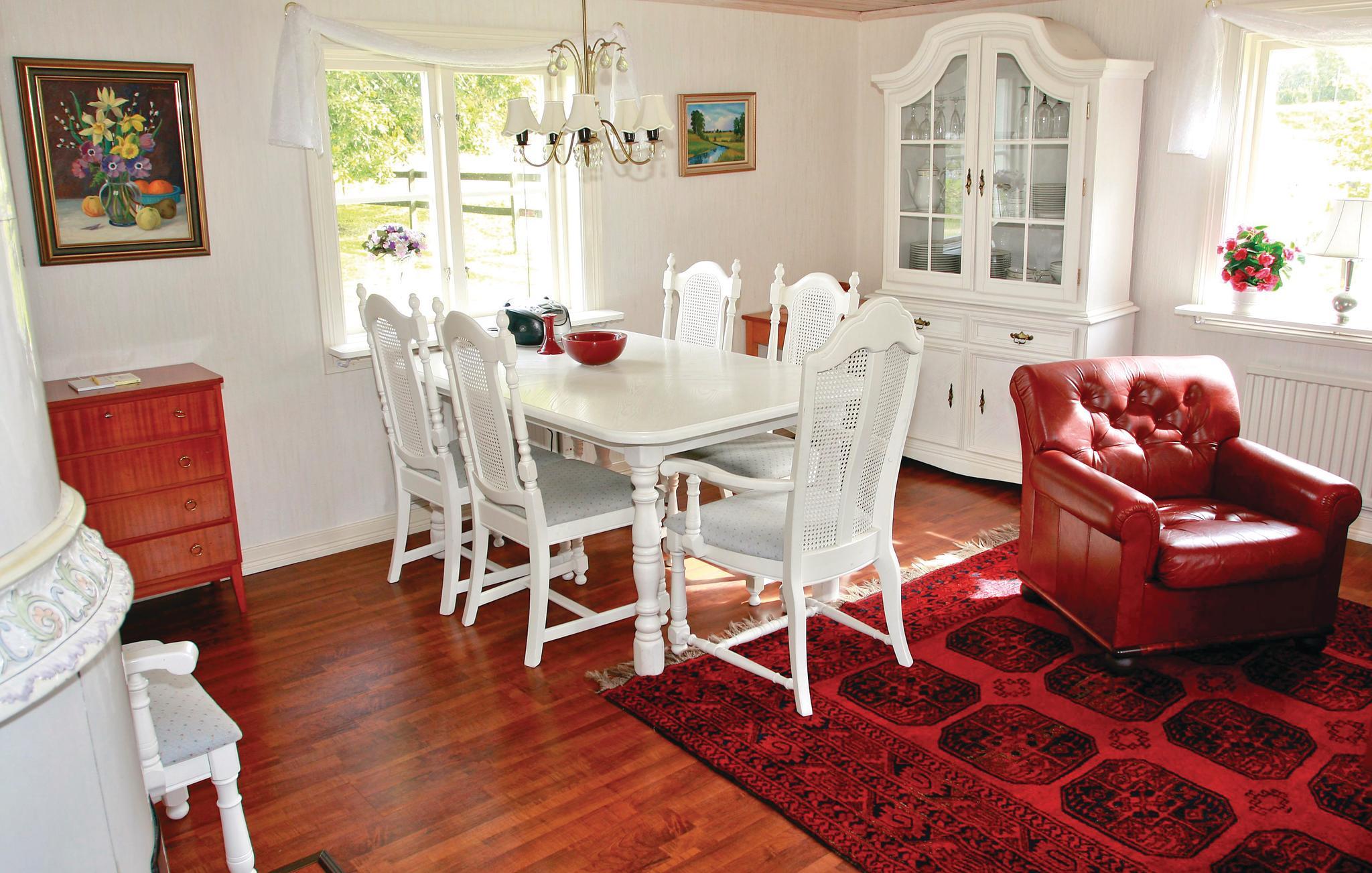 Dette charmerende hus er noget særligt med møbler af høj kvalitet og en unik beliggenhed midt i naturen. Den komfortable stue med sine elegante møbler lægger op til at slappe af. Tilbered lækre måltider i det veludstyrede køkken og nyd dem i den lyse spiseplads med udsigt til det grønne. Tilbring jeres dage ved søen og brug båden til afslappende ture eller fiskeri i søen Lönnern. Fang gedder, sandart eller aborre og nyd den vidunderlige udsigt over det klare vand og de omkringliggende skove. Hestefans kan medbringe deres egen hest eller leje en på stedet. Husejeren tilbyder rideture ud i den omkringliggende natur. Brug de eksisterende folde og ridebanen til at nyde rideoplevelsen selv på ferie. Kontakt venligst ejeren på forhånd, hvis I ønsker at leje en hest. Feriehuset er ideelt placeret til at udforske nærliggende skiområder såsom Ulricehamn, Mullsjö eller Falköping i den kolde årstid. Alle er let tilgængelige med bil.