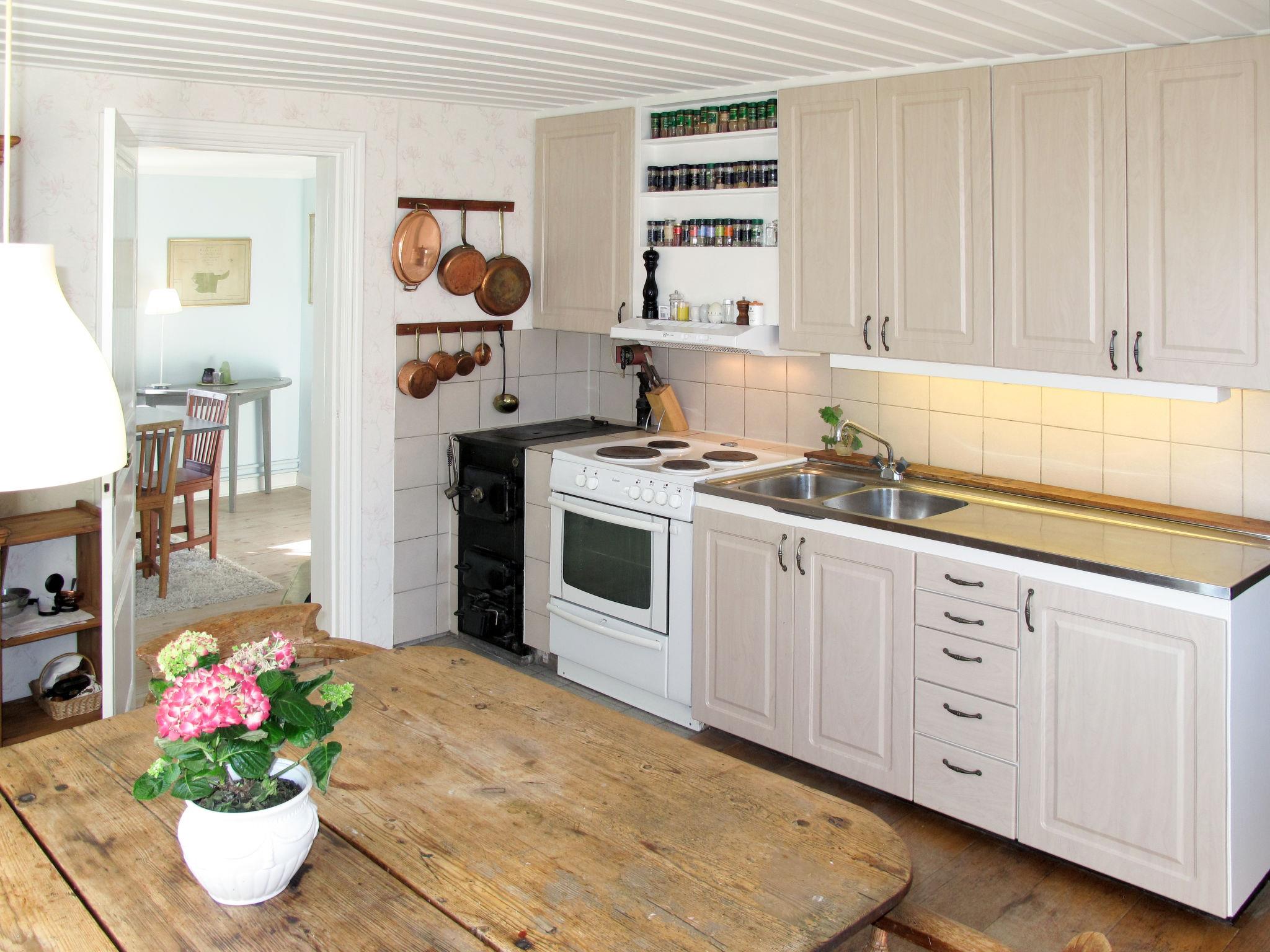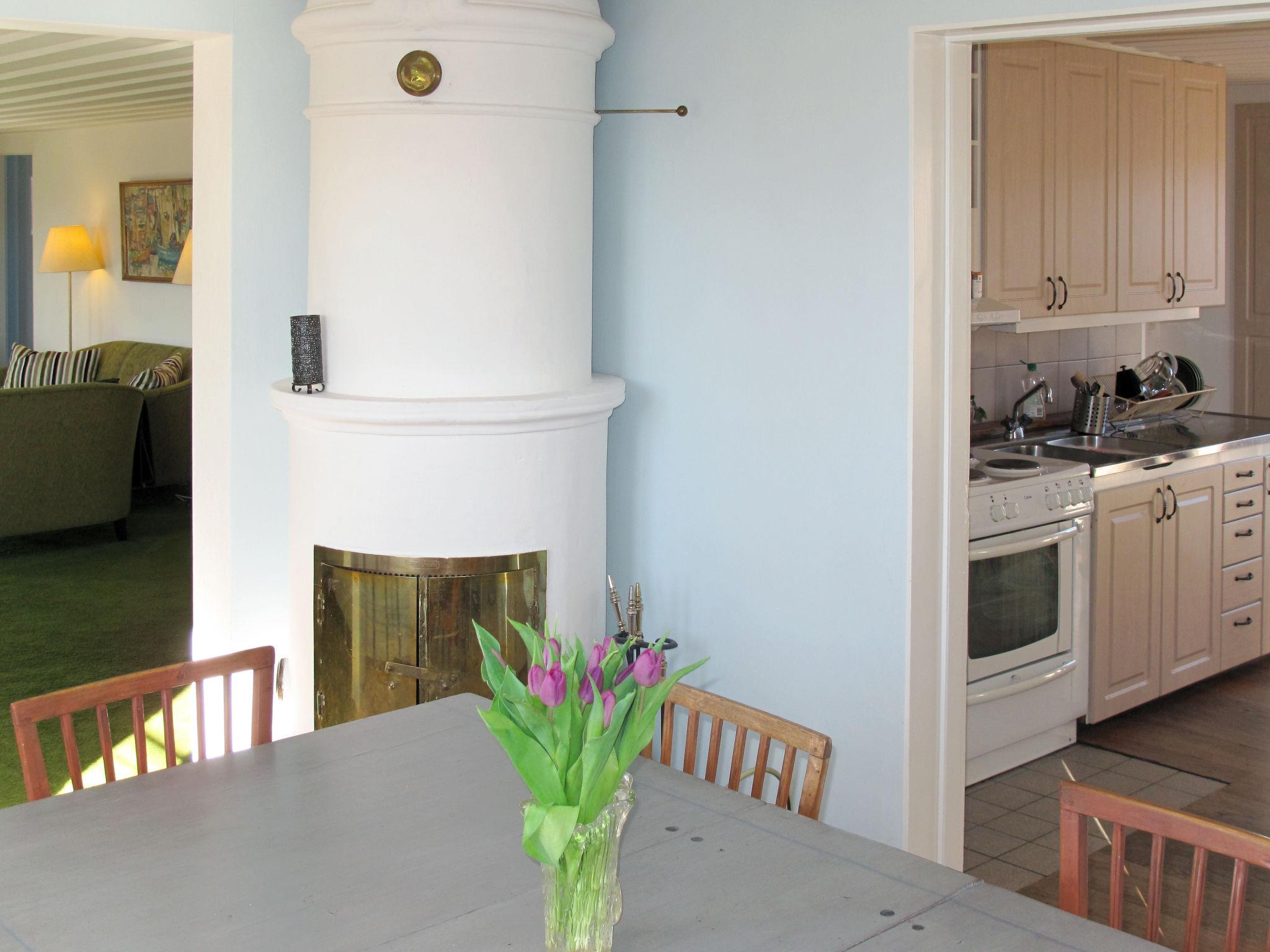 "Ilandet", 5-room house 169 m2 on 2 levels. Bright, romantic furnishings: living room with TV. Open dining room with tiled stove. Kitchen (4 hot plates, oven, dishwasher, microwave, freezer, electric coffee machine) with Scandinavian wood stove (only for decoration), dining nook. Bath/WC, shower. Electric heating. Upper floor: 1 room with 1 french bed (160 cm). 1 room with 2 beds and 1 double sofabed. 1 room with sloping ceilings with 1 french bed (160 cm). Wooden floors. Terrace furniture, barbecue (portable). Facilities: washing machine, iron, children's high chair. Internet (WiFi, free). Please note: non-smoking house. Smoke alarm, fire extinguisher. Freezer approx. 60 l. SDM530