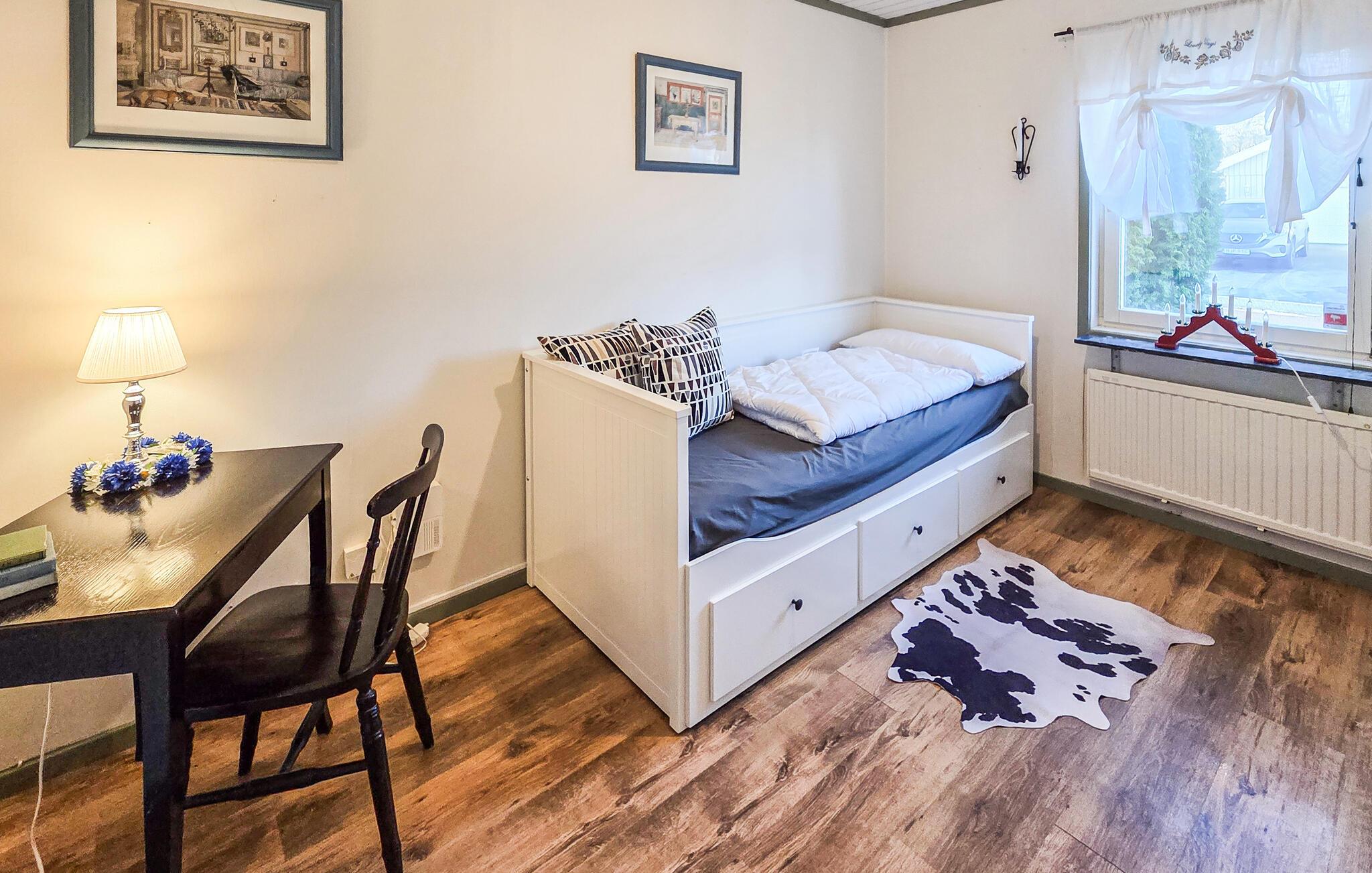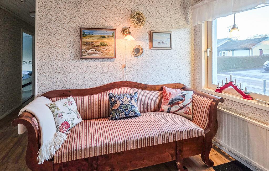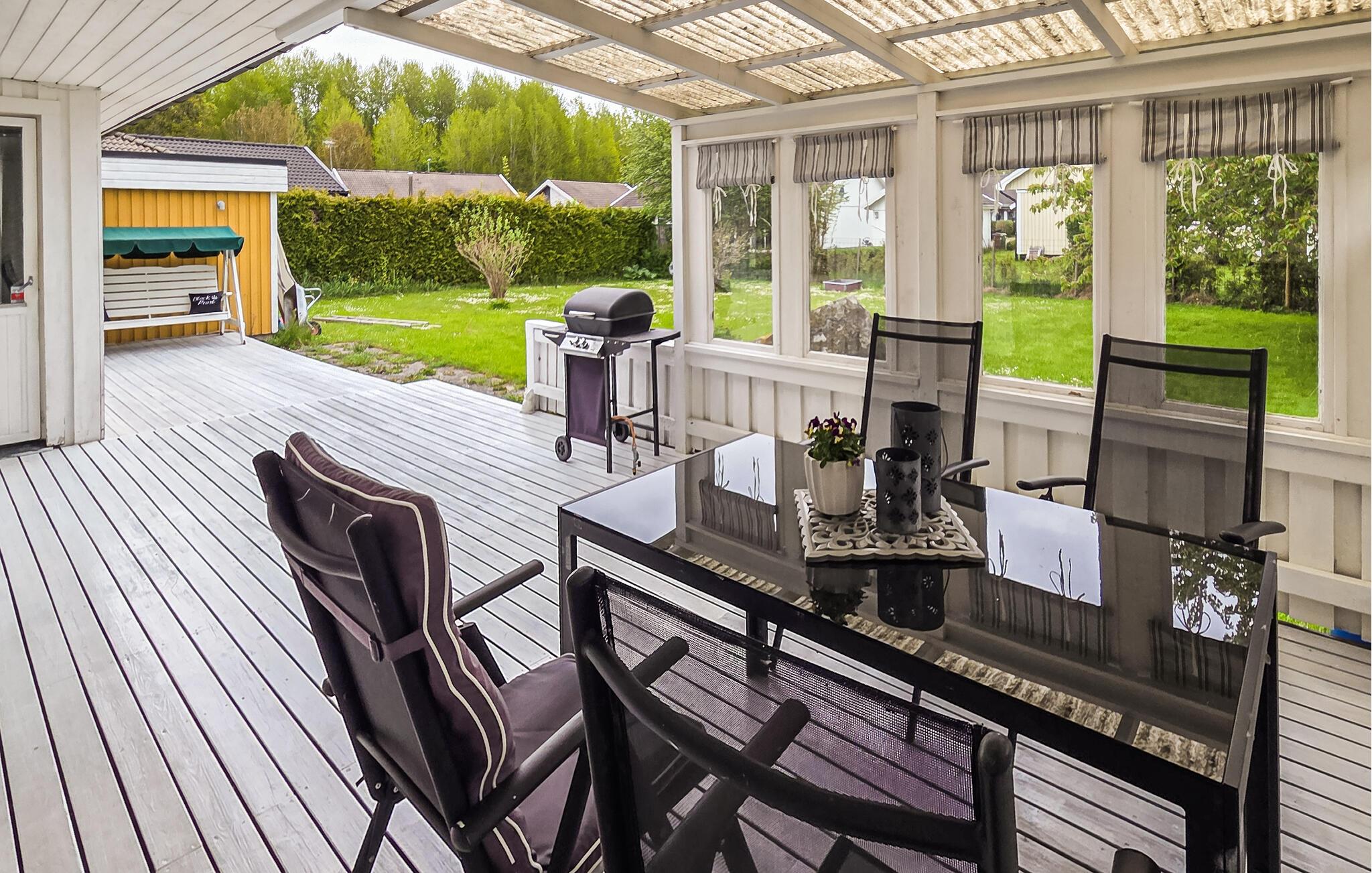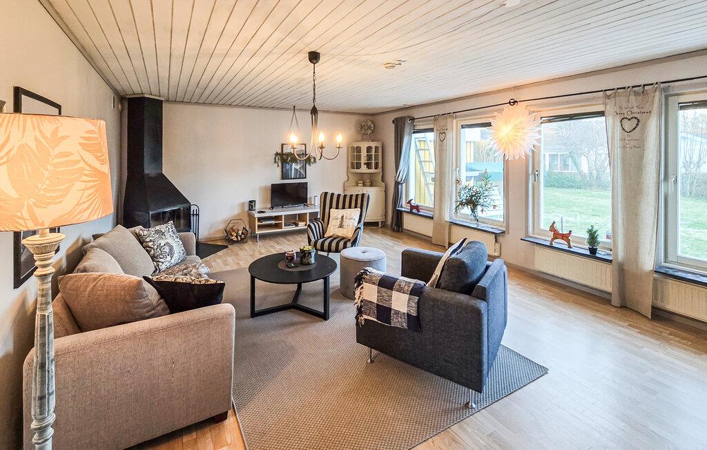 Dette smukke feriehus venter jer med sauna, have og hyggelig veranda til enhver sæson. Nyd et afslappende ophold i dette behageligt møblerede feriehus. Den rolige beliggenhed, den velholdte have og den overdækkede terrasse tilbyder de perfekte betingelser for en afslappende ferie i Småland. Træd ind i den rummelige opholdsstue med komfortable sofaer, pejs og store vinduer med udsigt over haven. Brug pladsen til at læse, spille spil eller blot slappe af. I det indbydende køkken med morgenmadsbar og tilstødende spiseplads kan I tilberede måltider sammen og nyde dem med udsigt over de grønne områder. Der er også en sauna til afslappende øjeblikke. Tilbring dagen på den rummelige veranda, som takket være taget kan bruges selv i omskifteligt vejr. Nyd jeres måltider udendørs, krøl jer sammen med en bog, eller lav noget på grillen om aftenen. Den grønne have med græsplæne, buske og træer inviterer jer til at blive hængende. Besøg de omkringliggende skove og vandr langs afmærkede stier gennem det smålandske landskab. Tag en dagstur til den charmerende by Mönsterås eller længere langs Østersøkysten. Krystalriget med dets berømte glasværk er også let tilgængeligt fra Blomstermåla.
