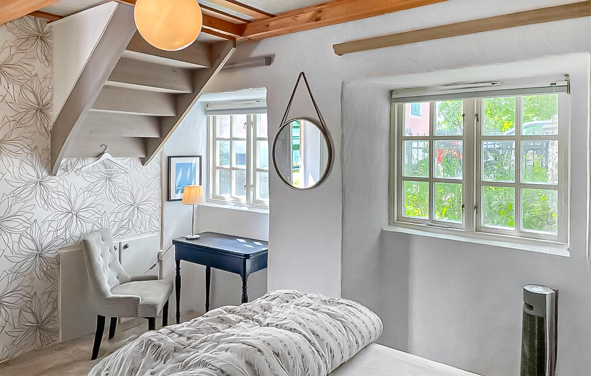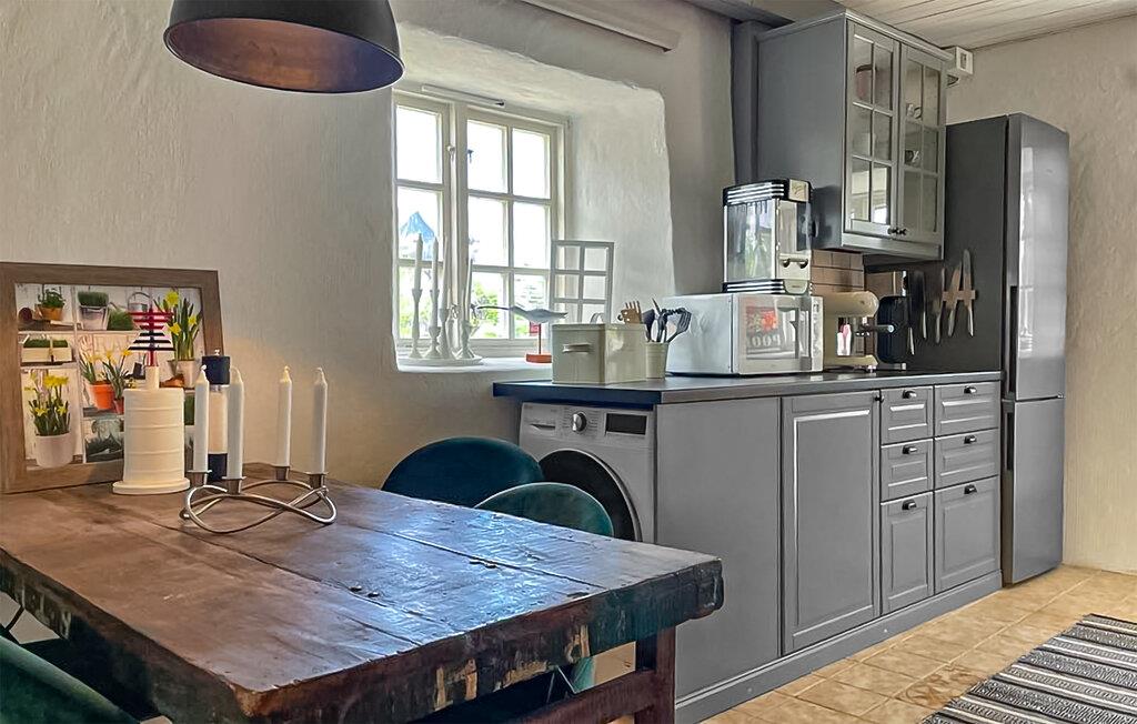 Under den omhyggelige restaurering af dette typiske gotlandske hus fra 1600-tallet er der gjort stor omhu for at bevare dets oprindelige stil. Samtidig vil I nyde alle nutidens moderne bekvemmeligheder. Tilbered solide måltider og spis ved det rustikke træbord efter lange vandreture eller spadsereture på stranden. Lyt til den stille knitren fra brændeovnen, mens I læser eller streamer en spændende serie.
